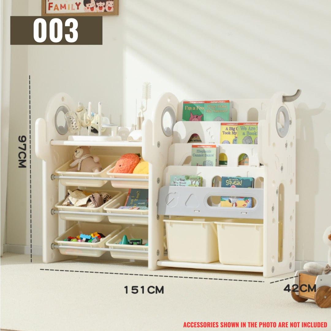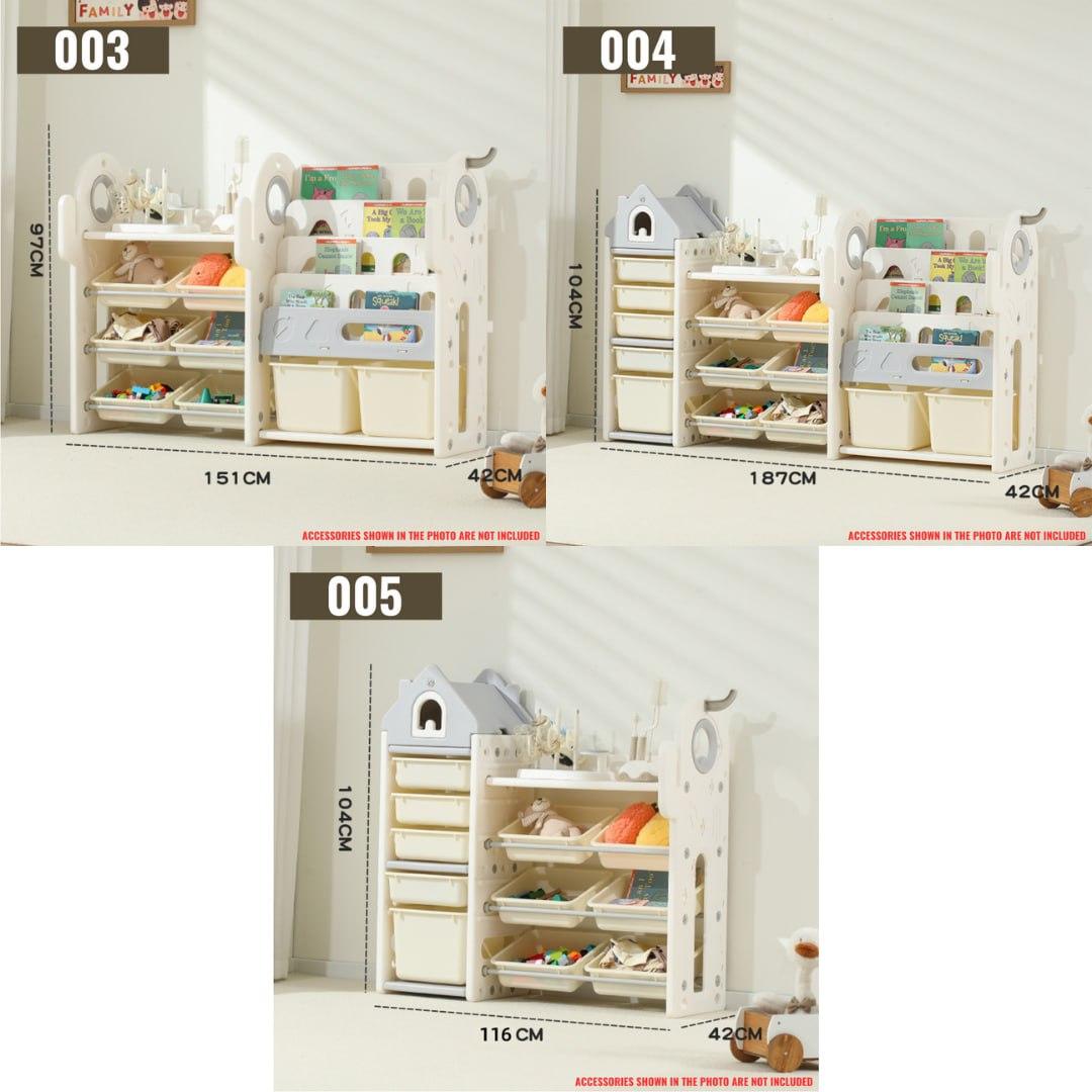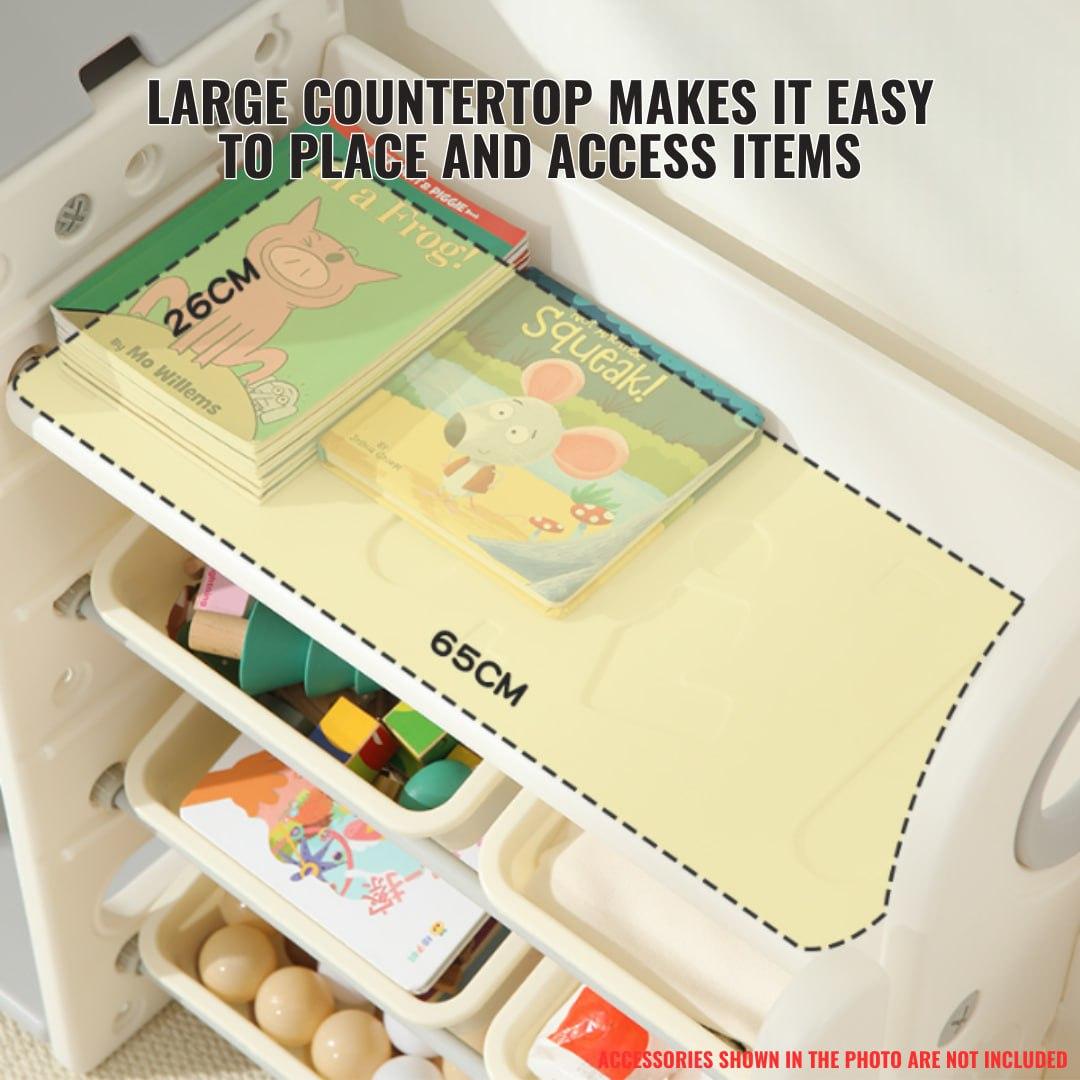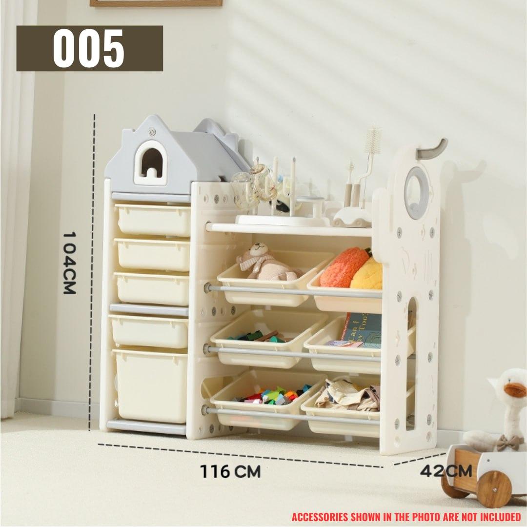 The Cactus Storage Rack uses open shelves, bins, and book racks to neatly arrange toys, books, and supplies, making it ideal for children's playrooms or nurseries.