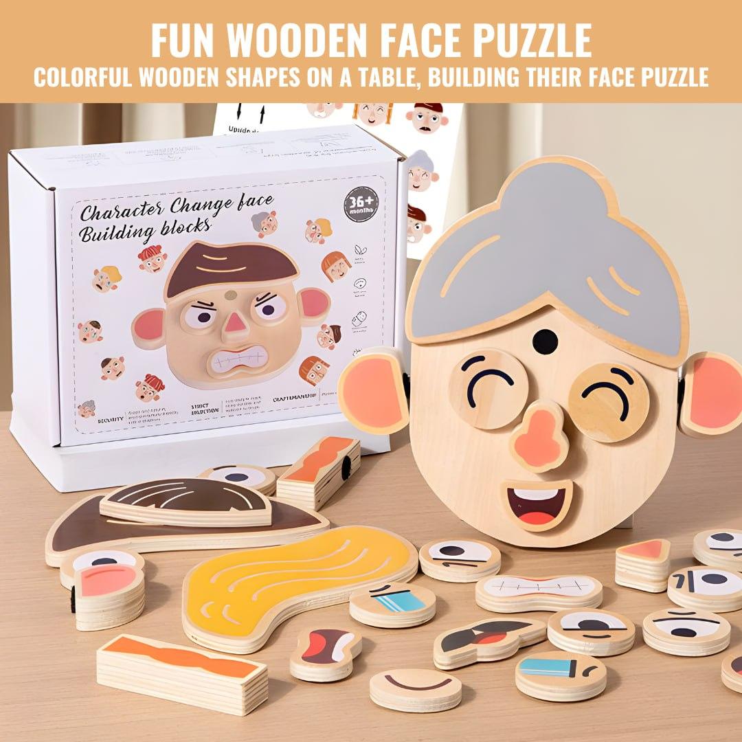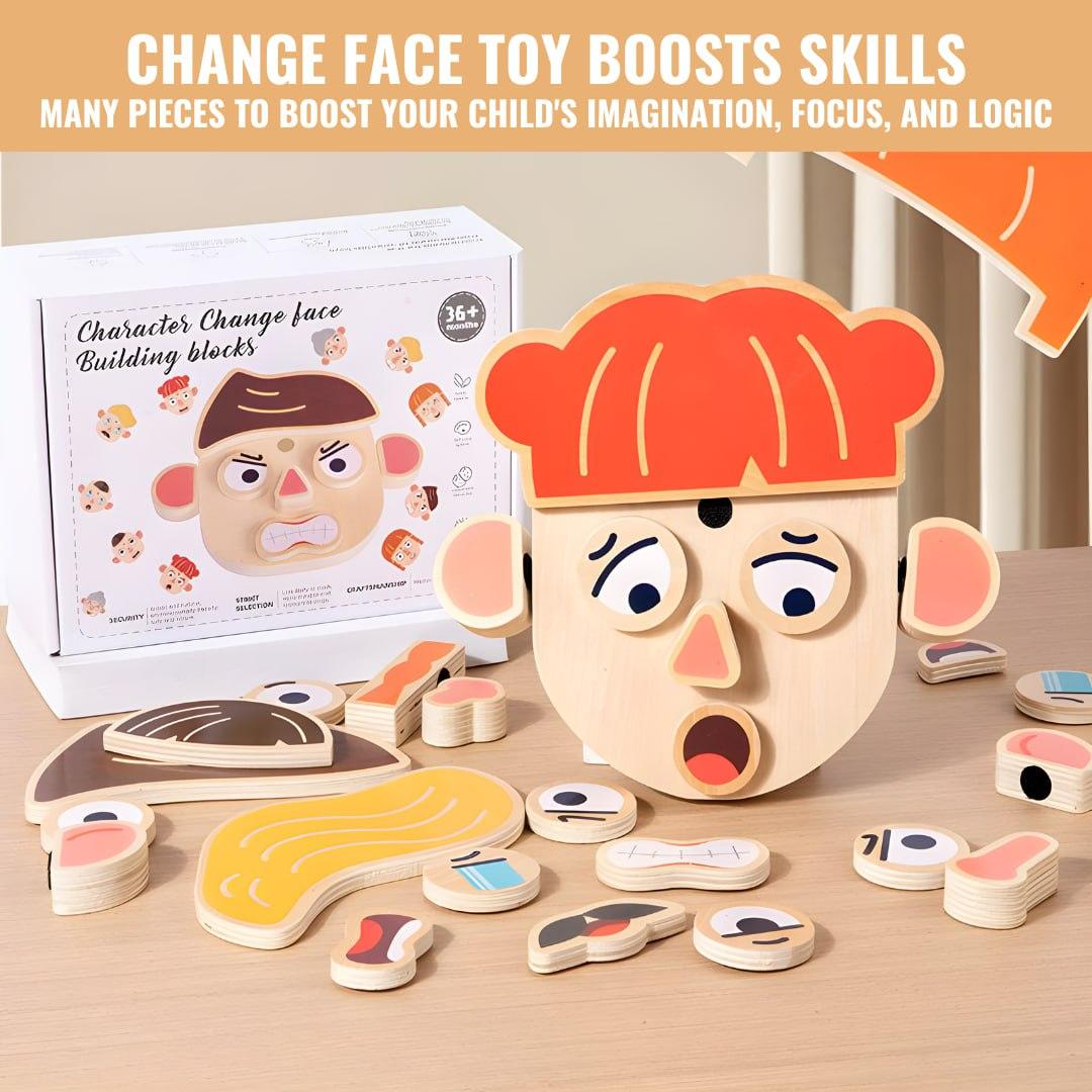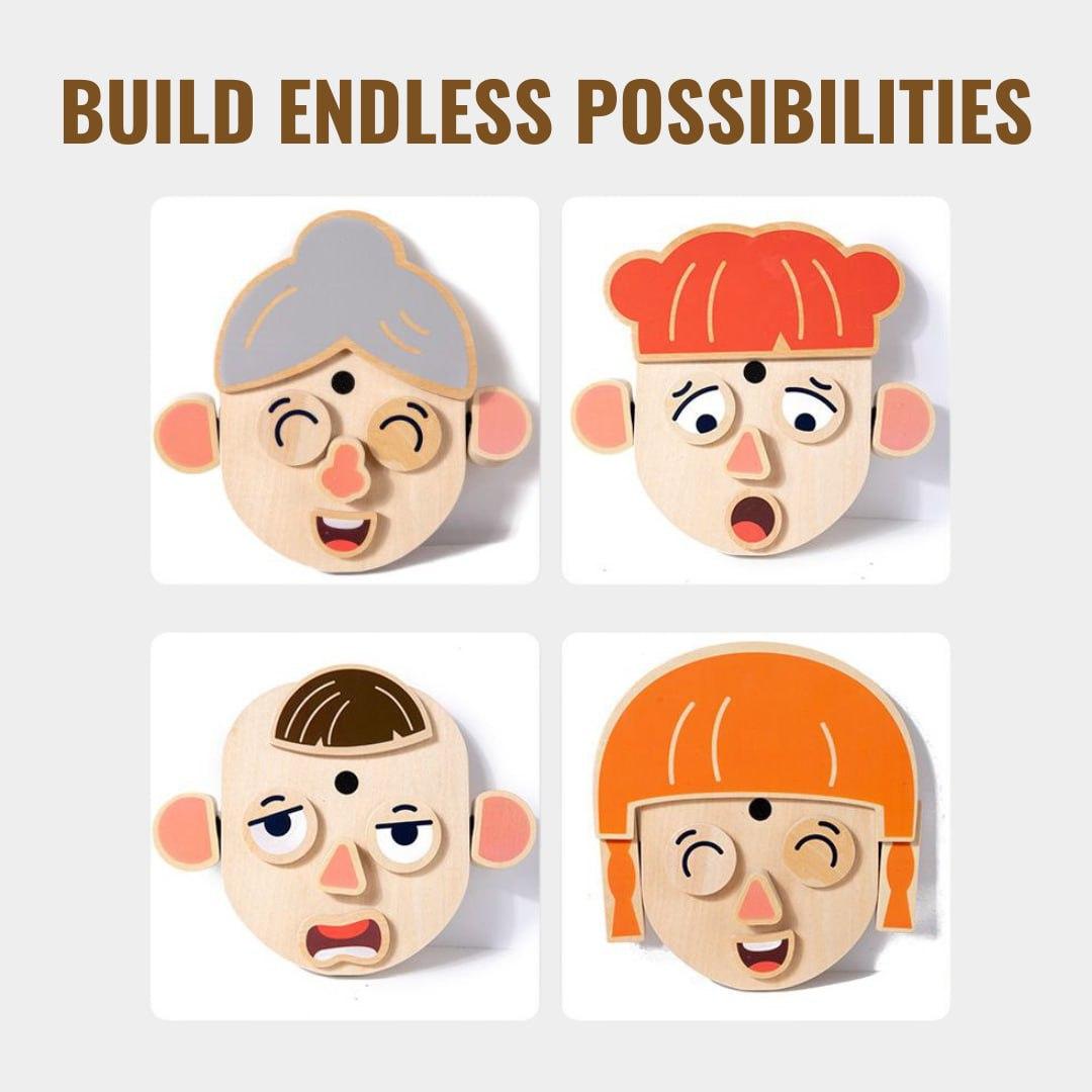 • Fun wooden face-changing toy that helps kids recognize emotions and expressions.