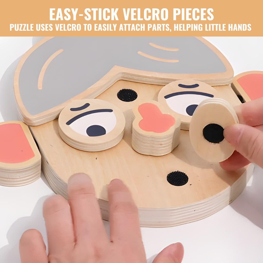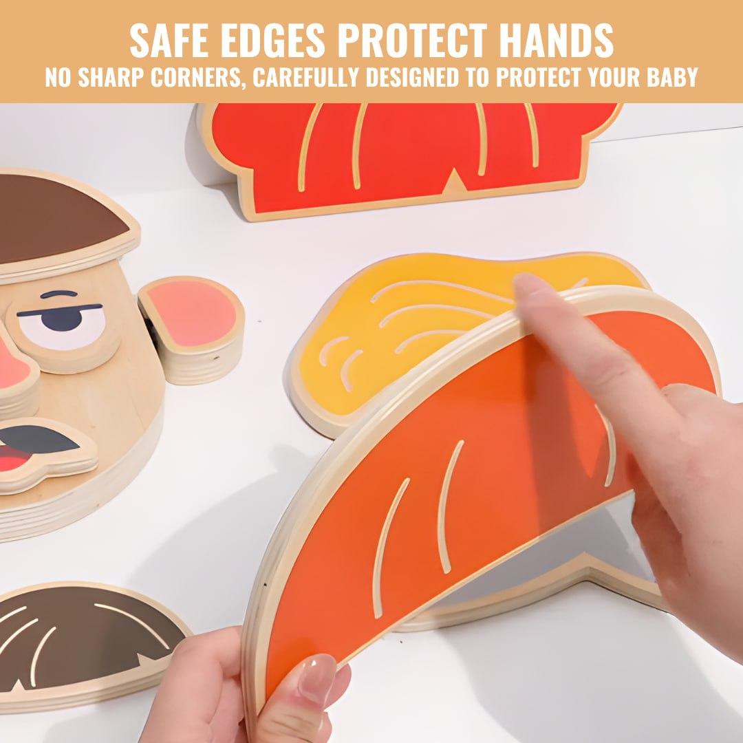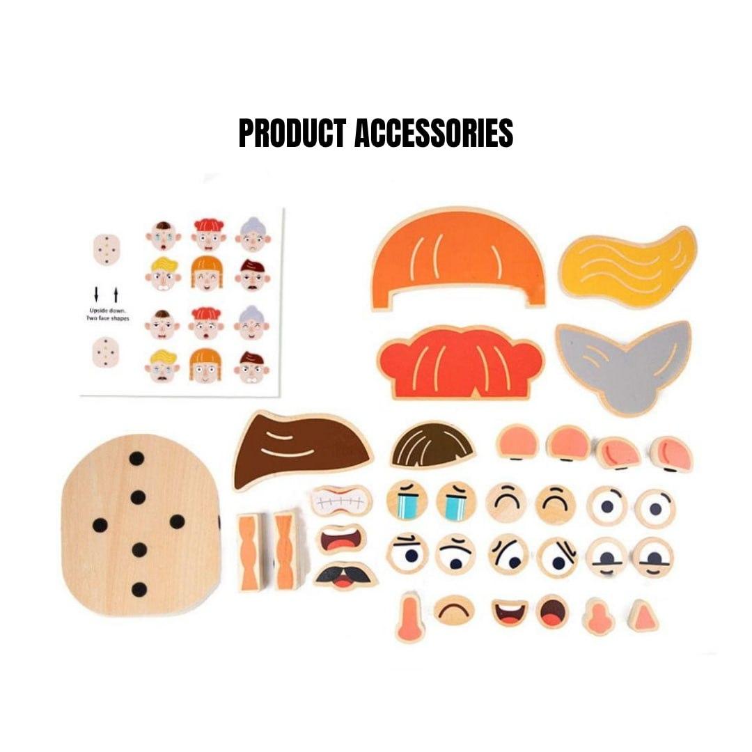 • Fun wooden face-changing toy that helps kids recognize emotions and expressions.