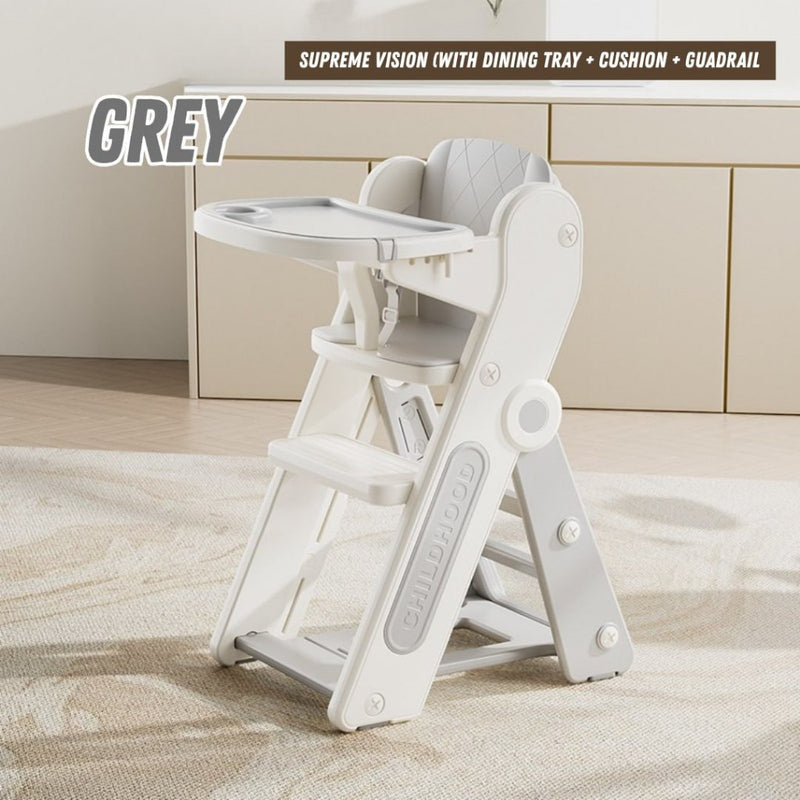-Ergonomically designed high chair with adjustable height and footrest for growing children.