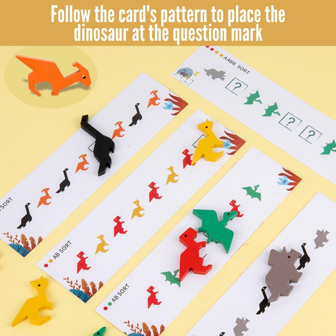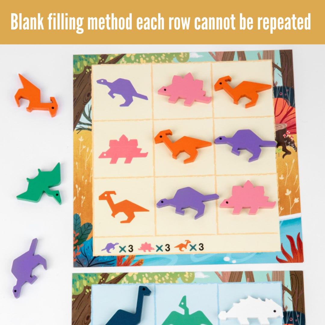 Toddlers may improve their hands-on skills and color recognition by sorting different colored dinosaurs. Children can play with five distinct cards, including identifying rules, amount cognition, addition, subtraction, multiplication and division cognition, direction, and digital color cognition.