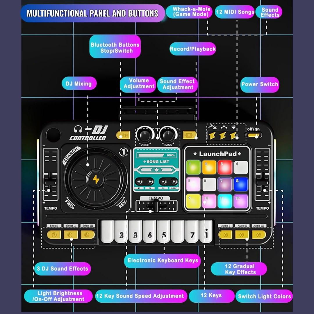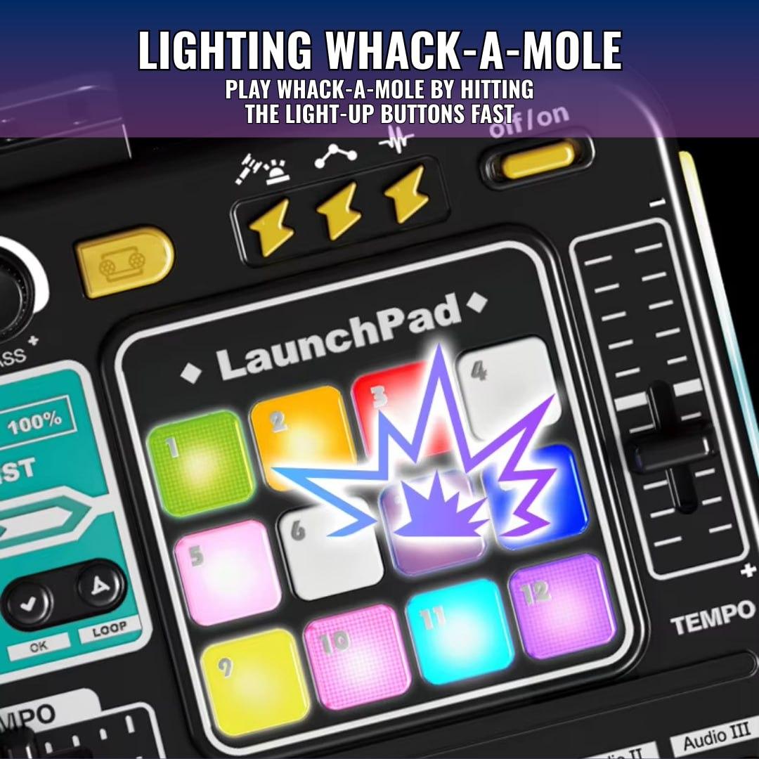 This musical DJ toy's enticing lights create an immersive play environment that improves the whole experience.