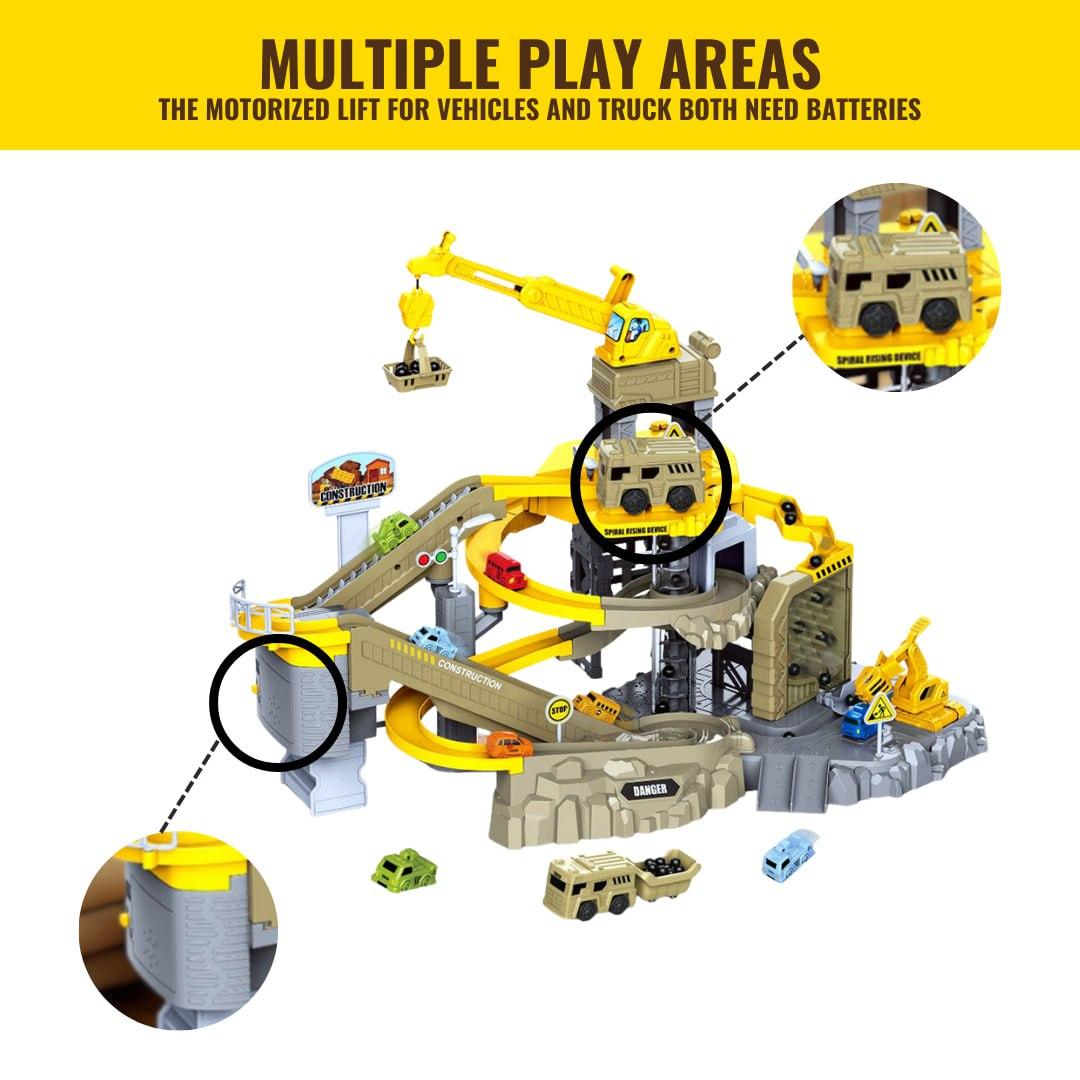 Exciting multi-level construction base complete with ramps, cranes, trucks, and road signs for endless imaginative play. Enhances creativity, problem-solving, and motor skills while kids simulate real construction site adventures. Durable...