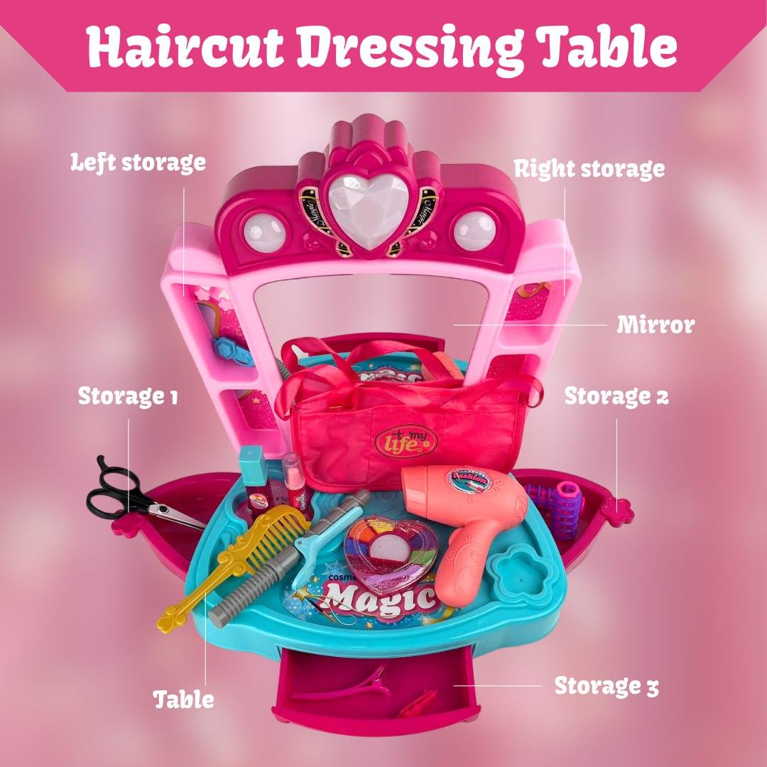 Little girl vanity with mirror can capture your little princess' attention and improve amusement. Help kids develop their inventiveness, fine motor abilities, and self-confidence. During role-playing games, this is an excellent approach to develop little girls' self-dressing skills.