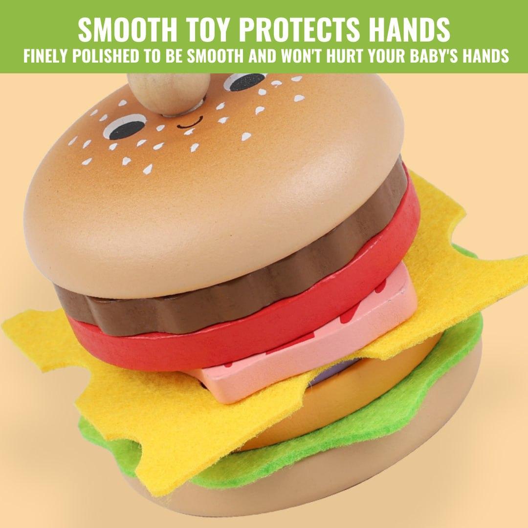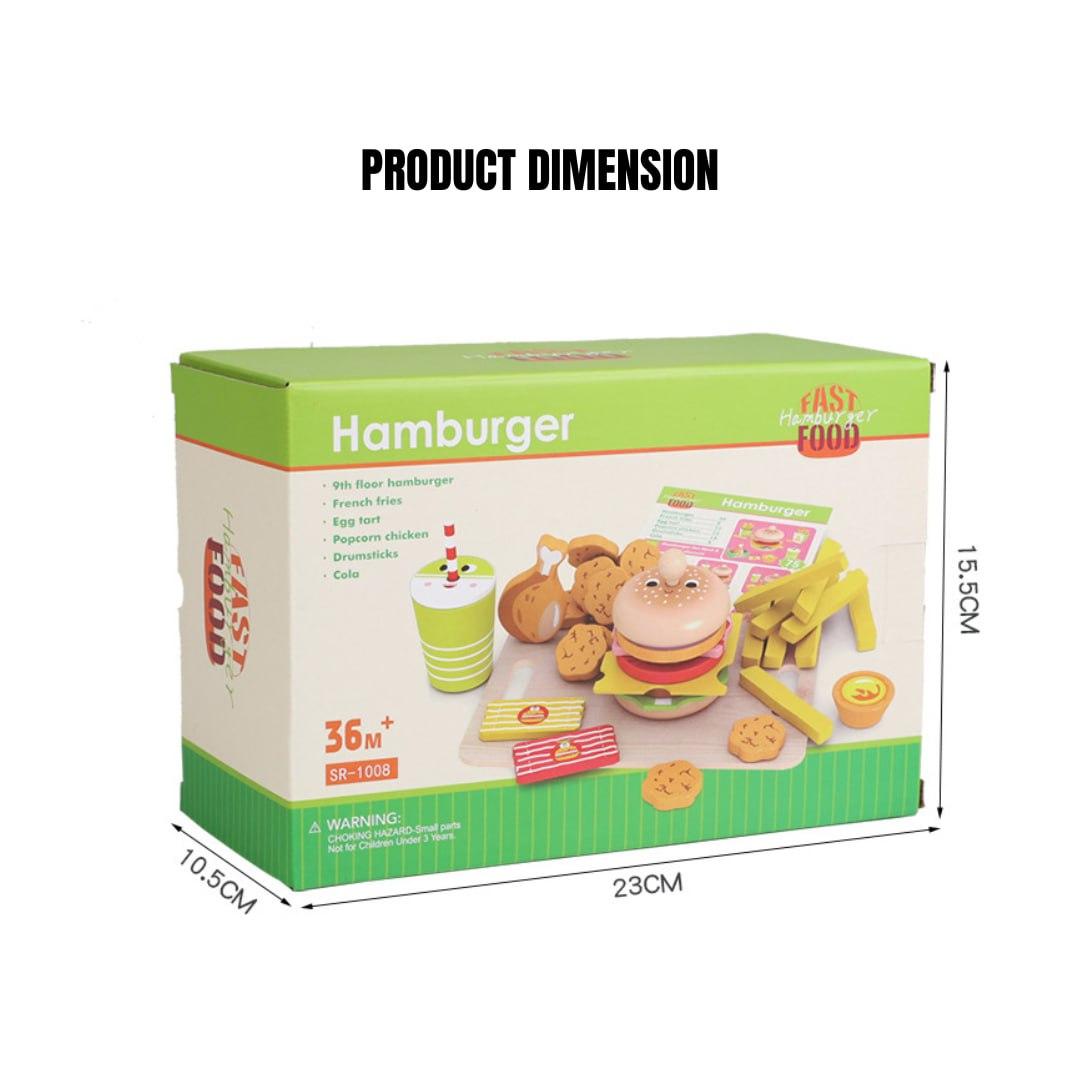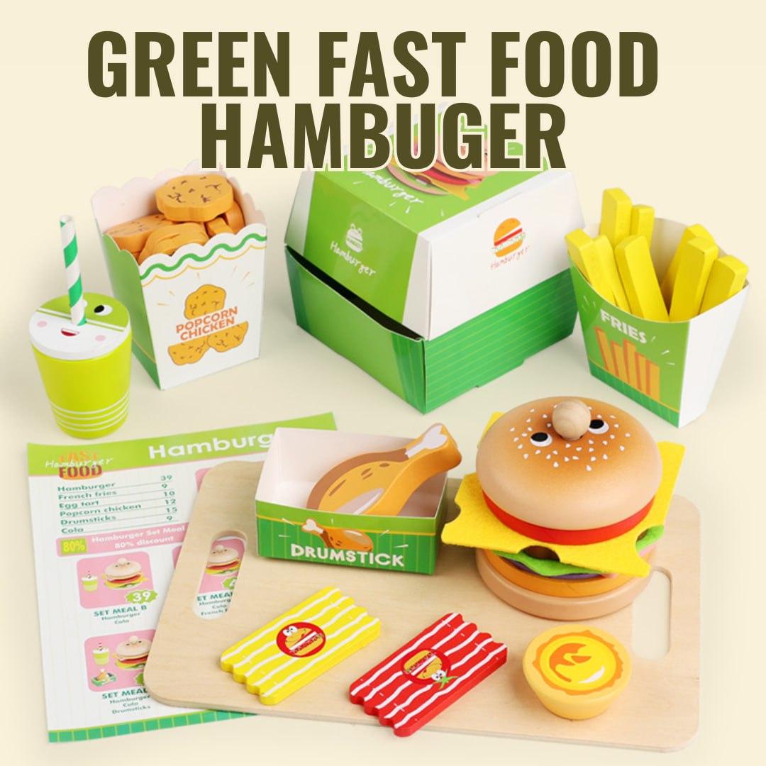 Green Fast Food Hamburger Ages 3+ Pretend Wooden Set Toy Gift For Kids by WISHLAND