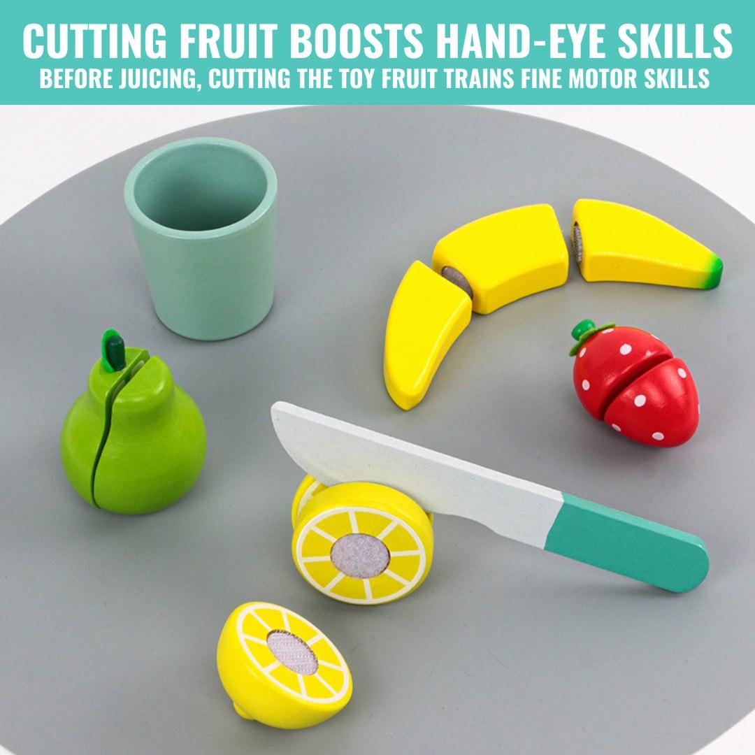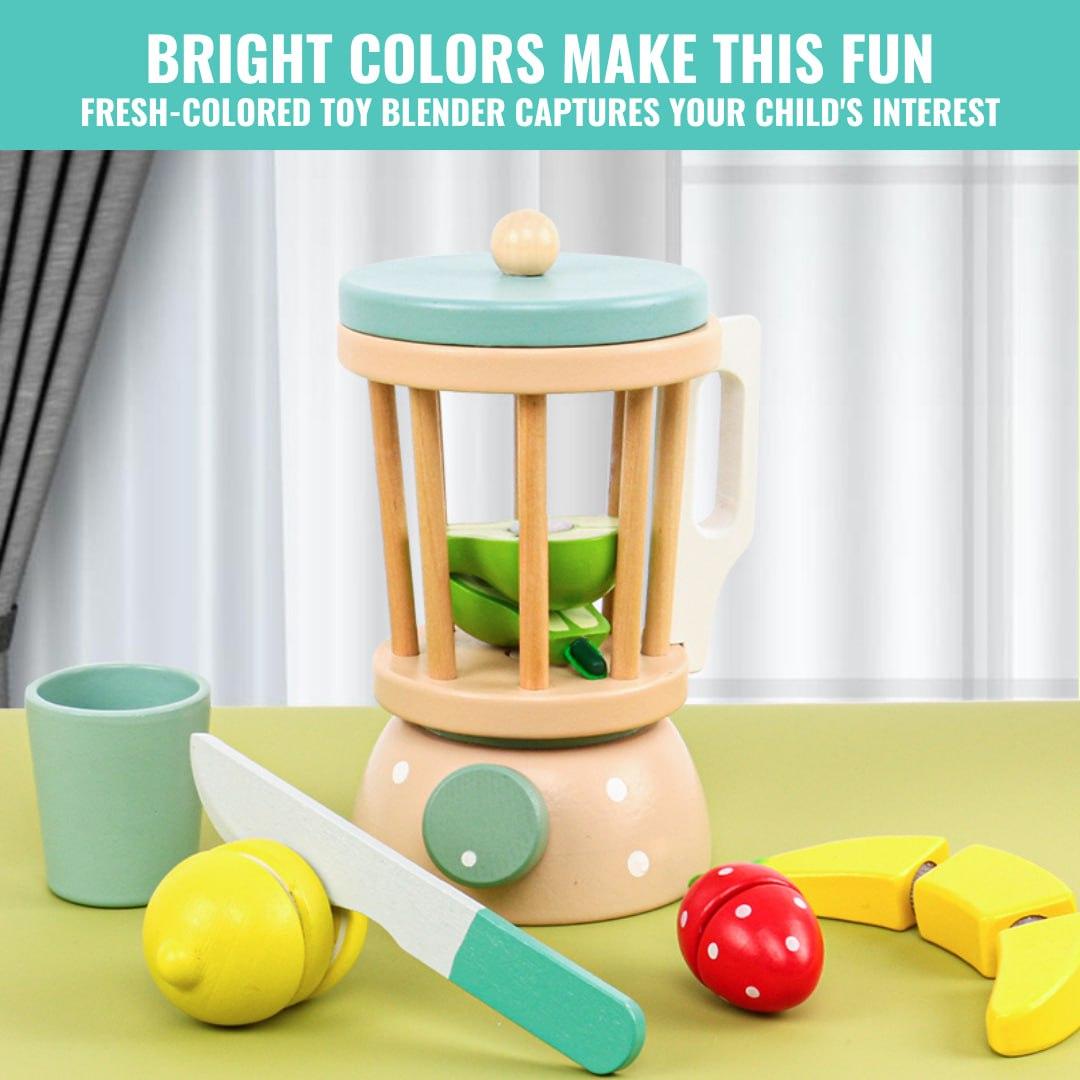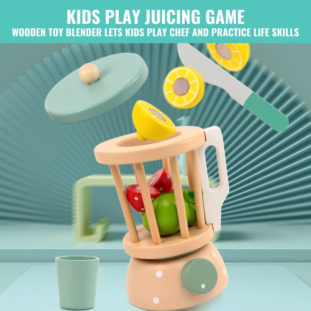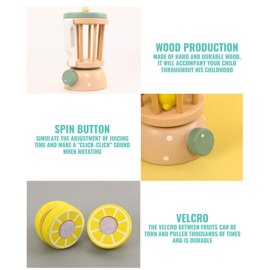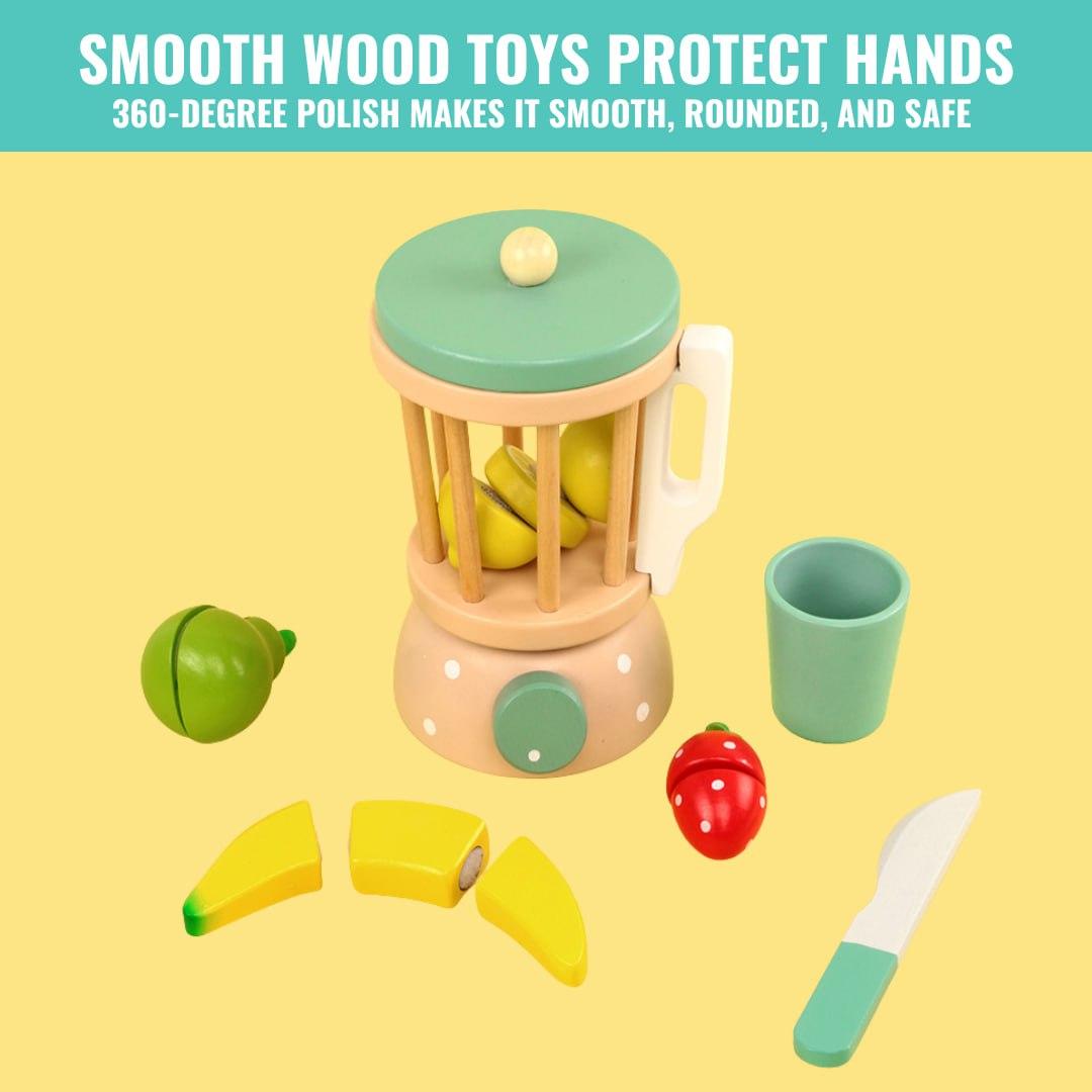 A delightful wooden juicer set that lets kids “blend” colorful fruits and create their own pretend smoothies.