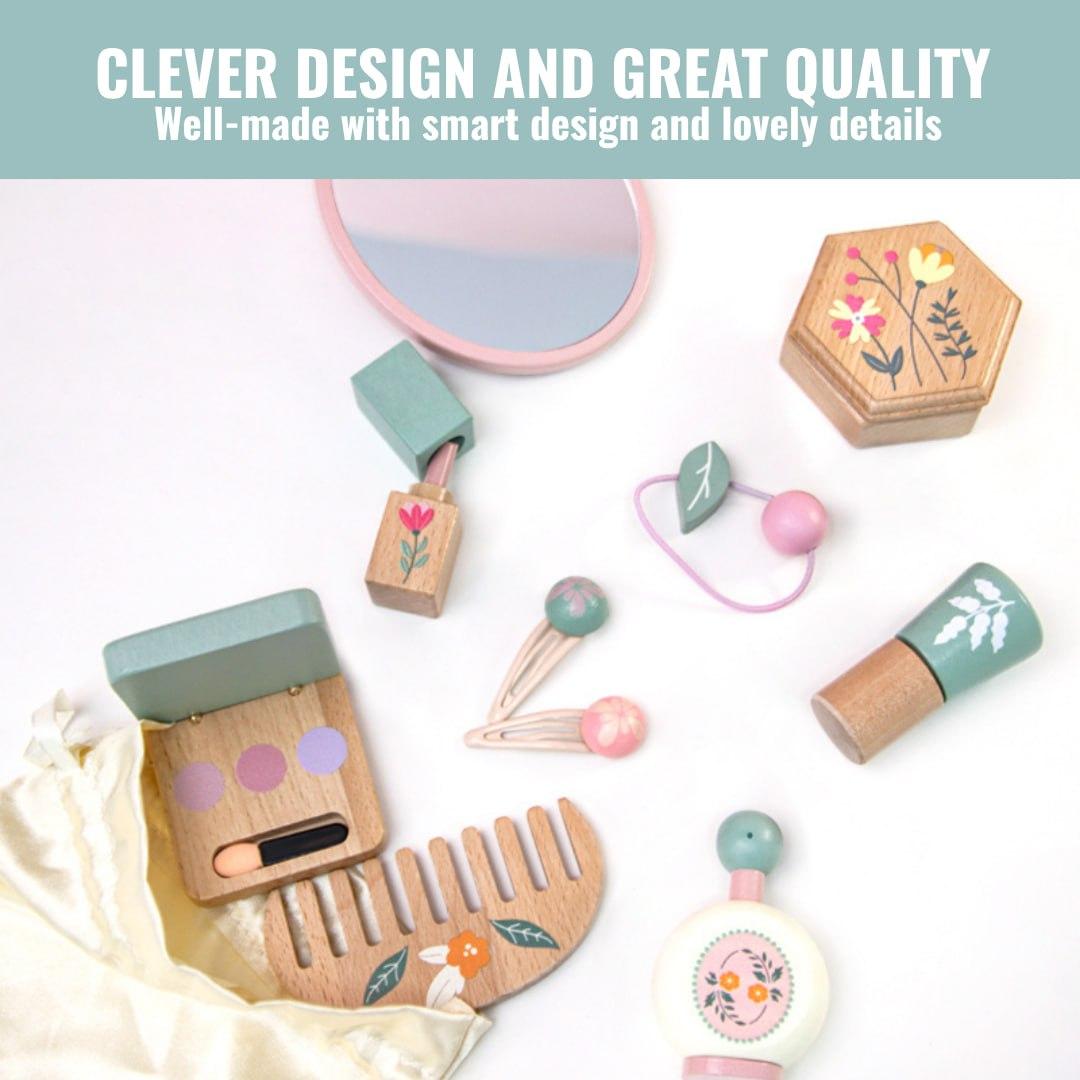 This set of educational and entertaining wooden makeup toys is perfect for birthdays, holidays, or any special occasion. It is sure to delight any young princess.
