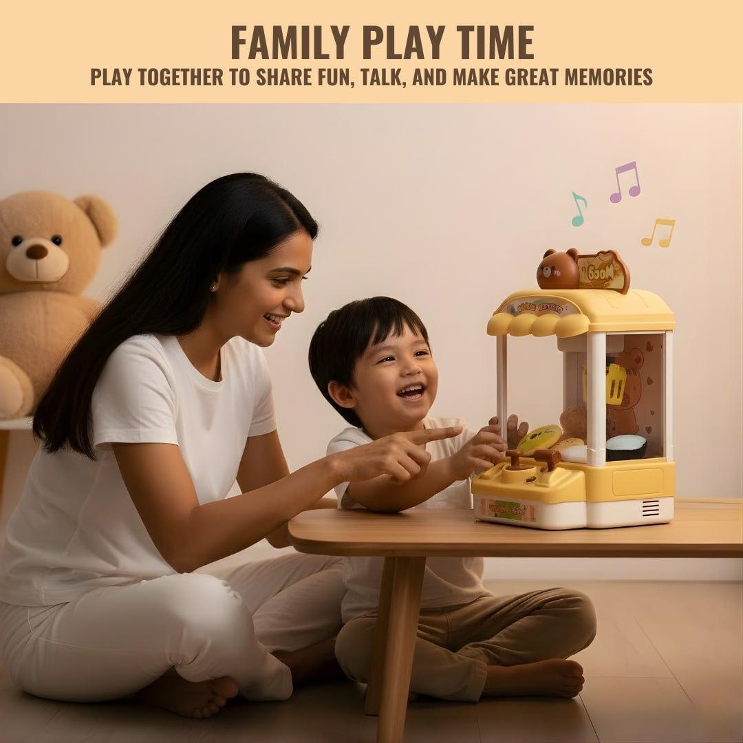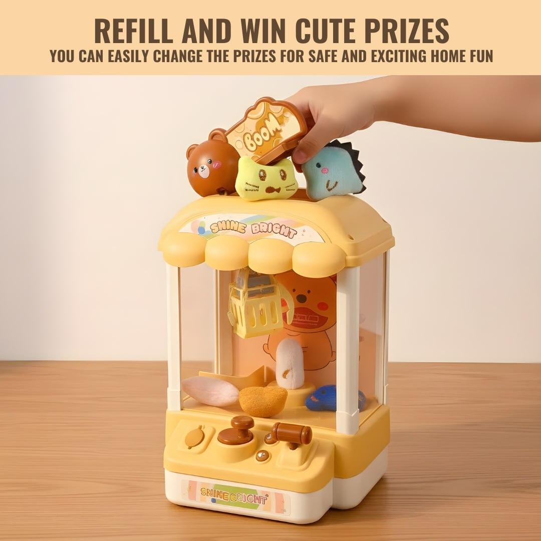 A cute and entertaining mini claw machine designed for kids who love arcade-style challenges, featuring soft plush dolls and easy-to-use controls that encourage exciting hands-on play.