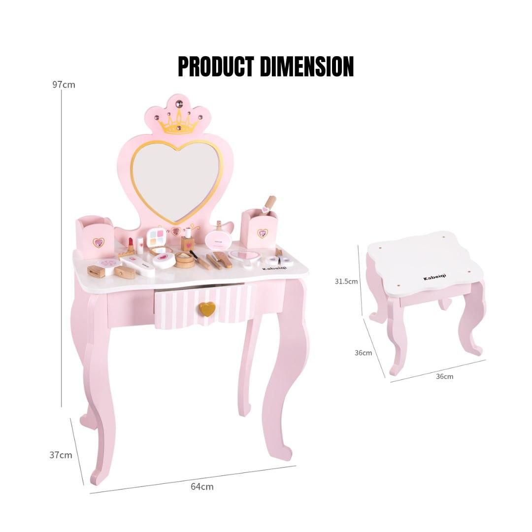 Features a heart-shaped mirror, pastel accents, and a matching stool, along with small compartments perfect for pretend makeup and accessories, making playtime feel truly magical.