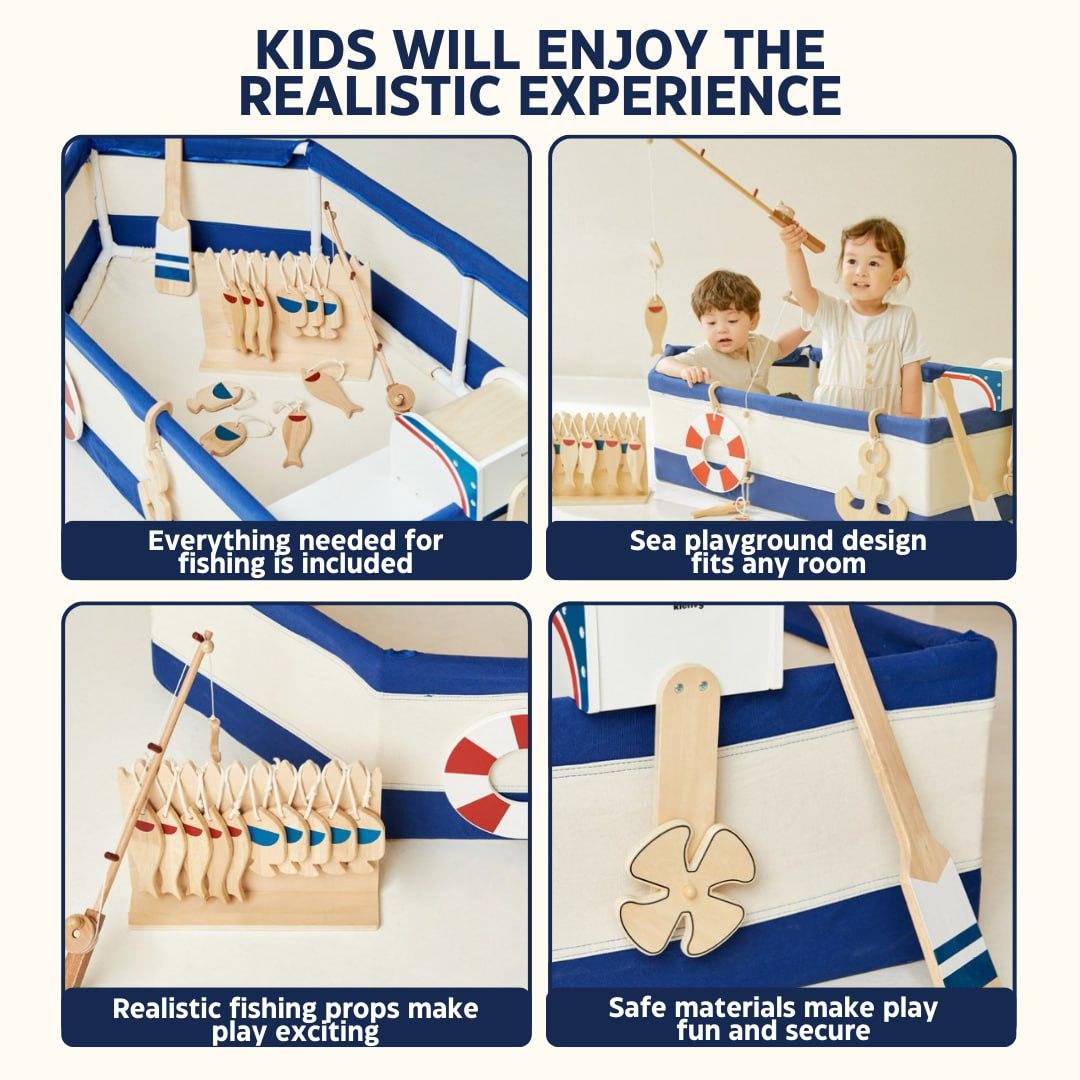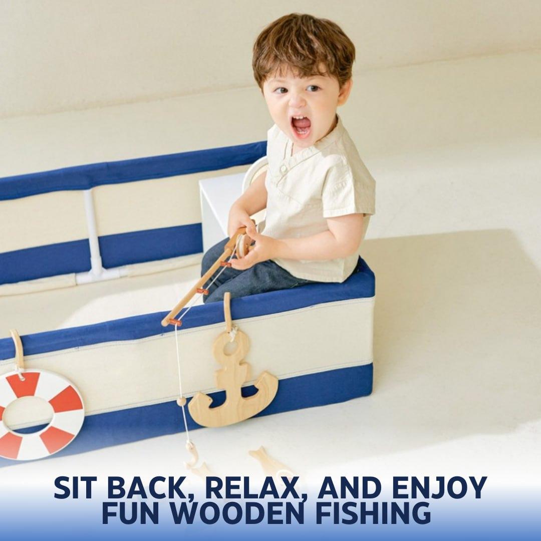 KIENVY Wooden Fishing Boat Ages 2+ Pretend Fisherman Playset Gift For Kids by WISHLAND