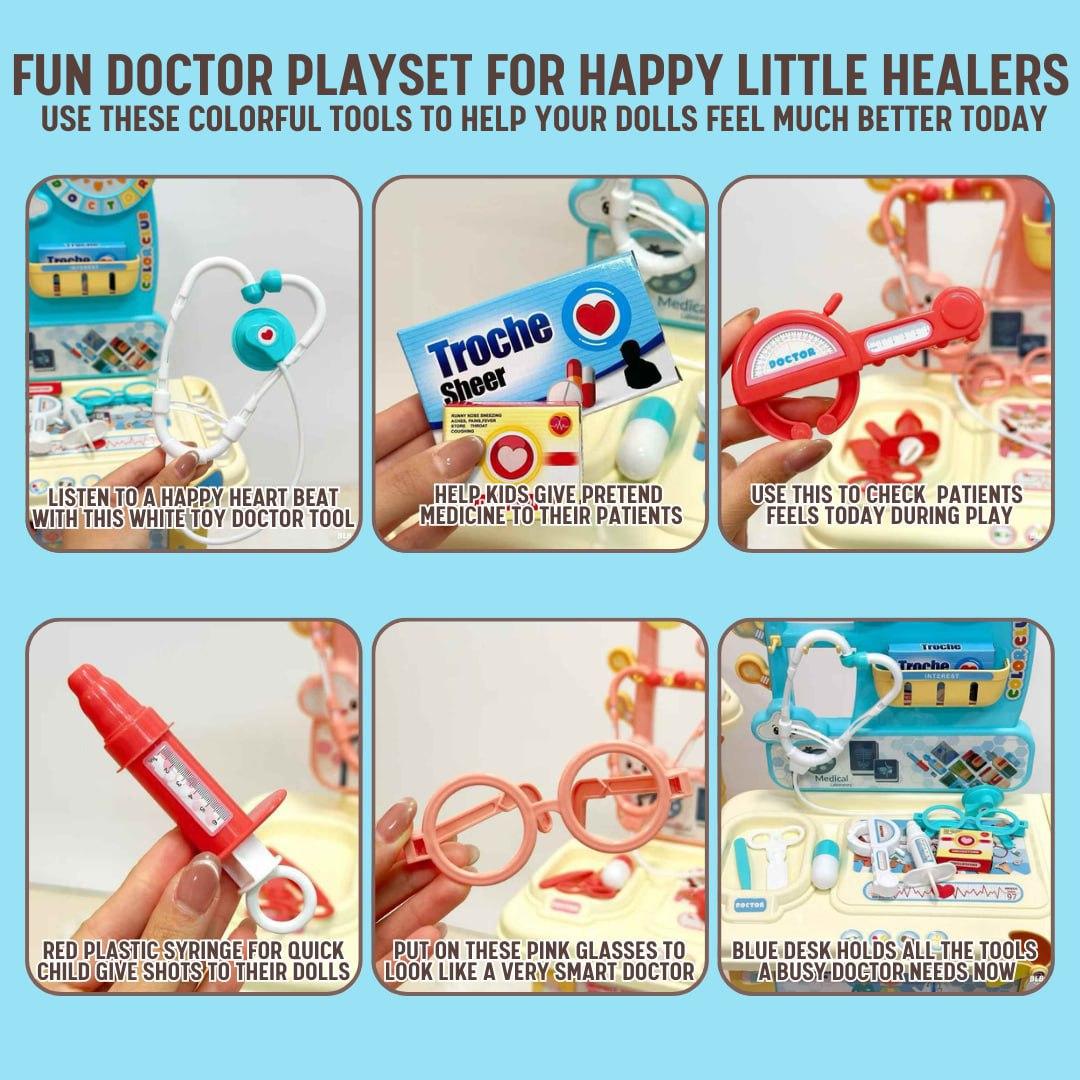 • Fun doctor role play set with medical tools and accessories that lets kids pretend to check patients and run their own mini clinic