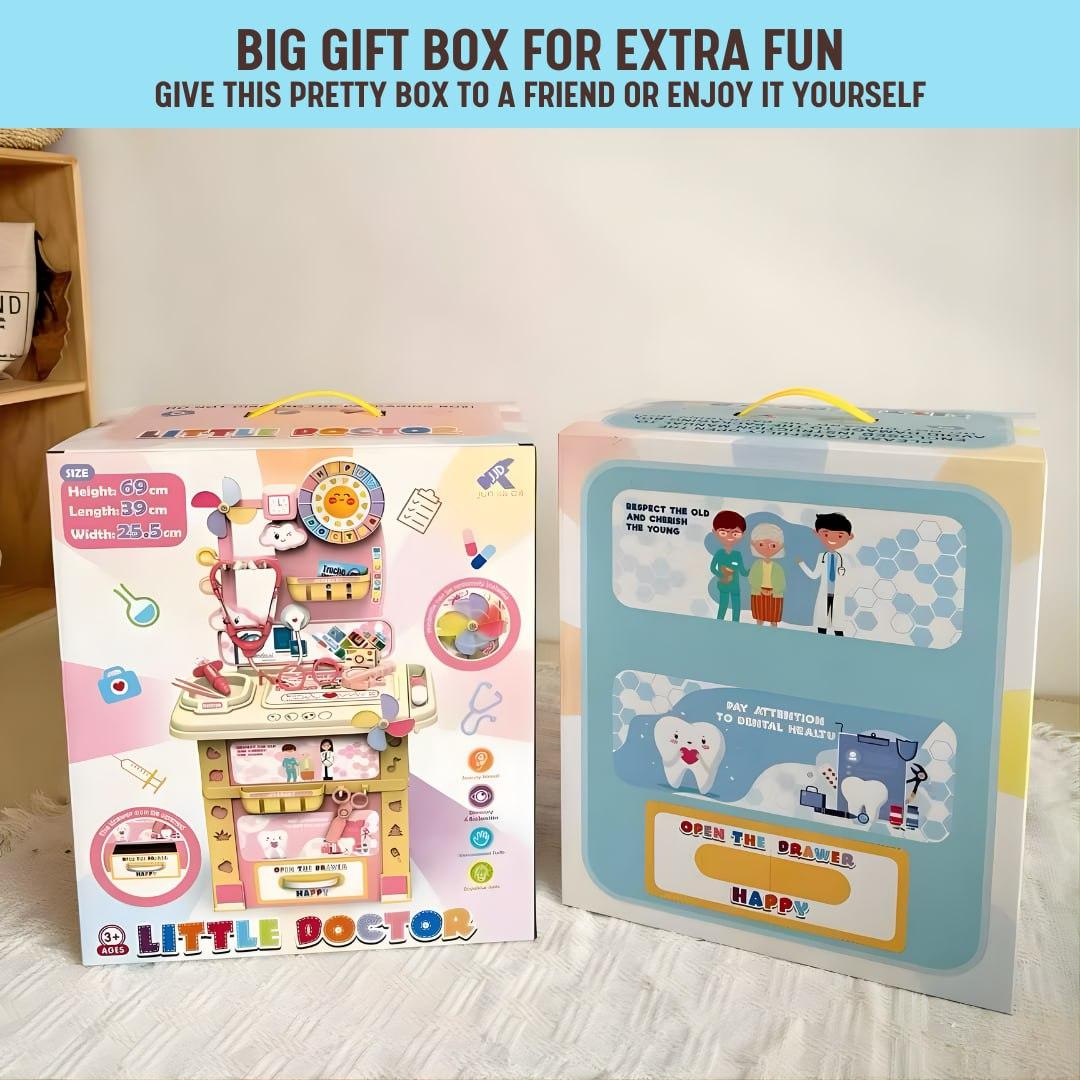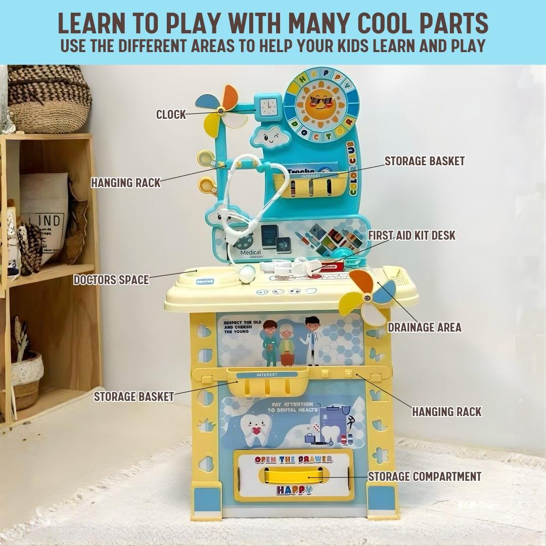 • Colorful interactive design with storage drawers and multiple accessories for a complete pretend doctor experience at home