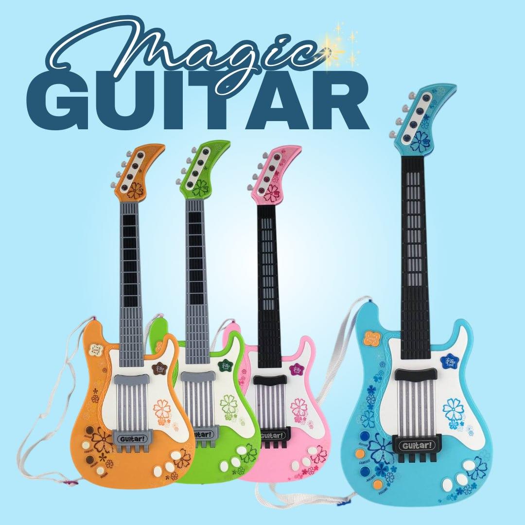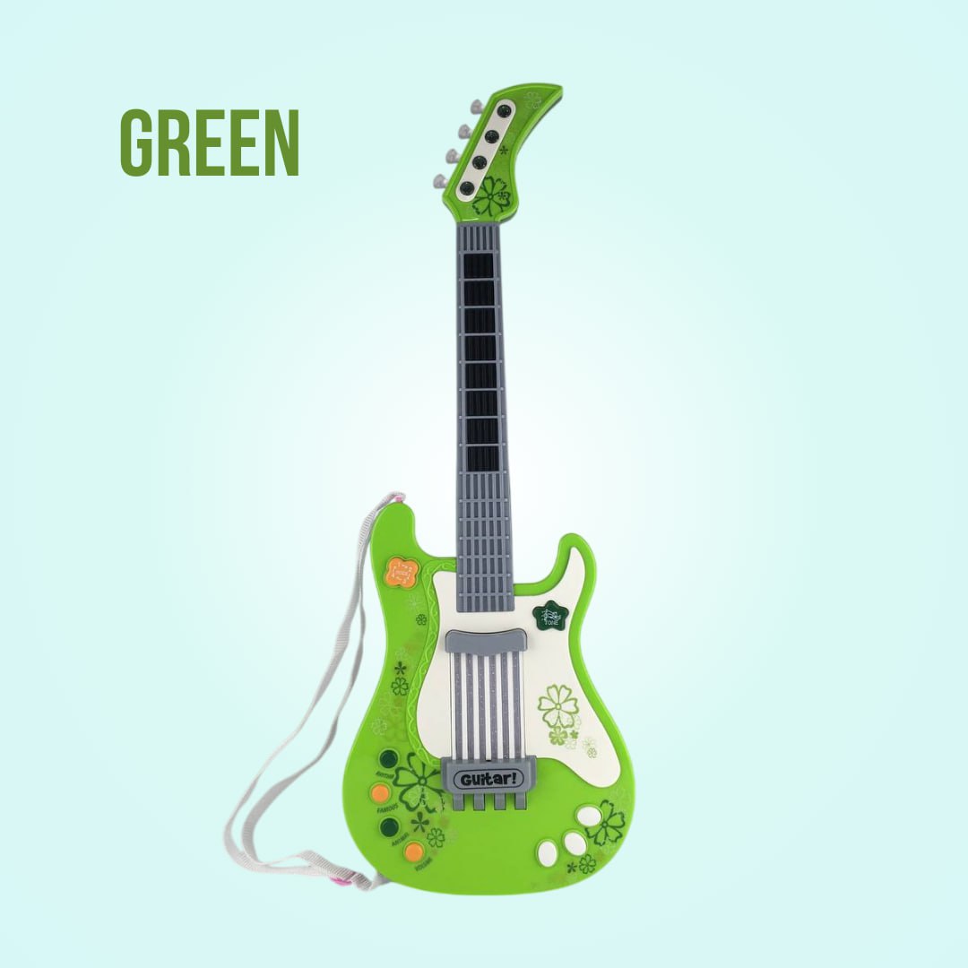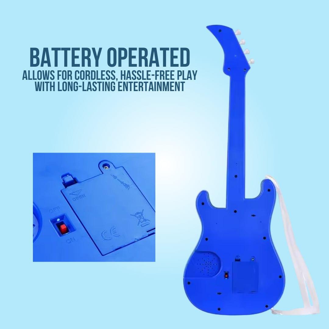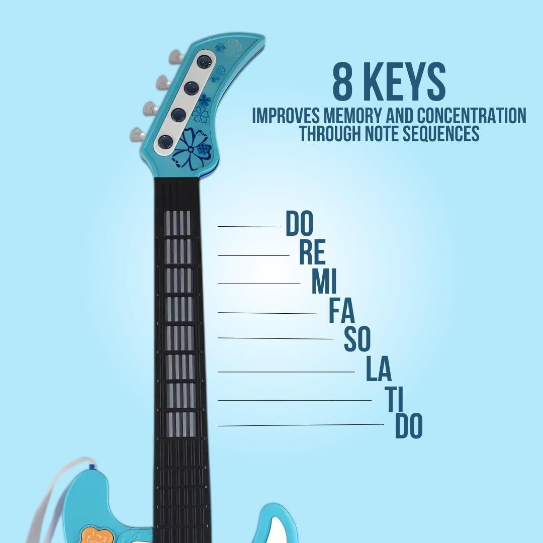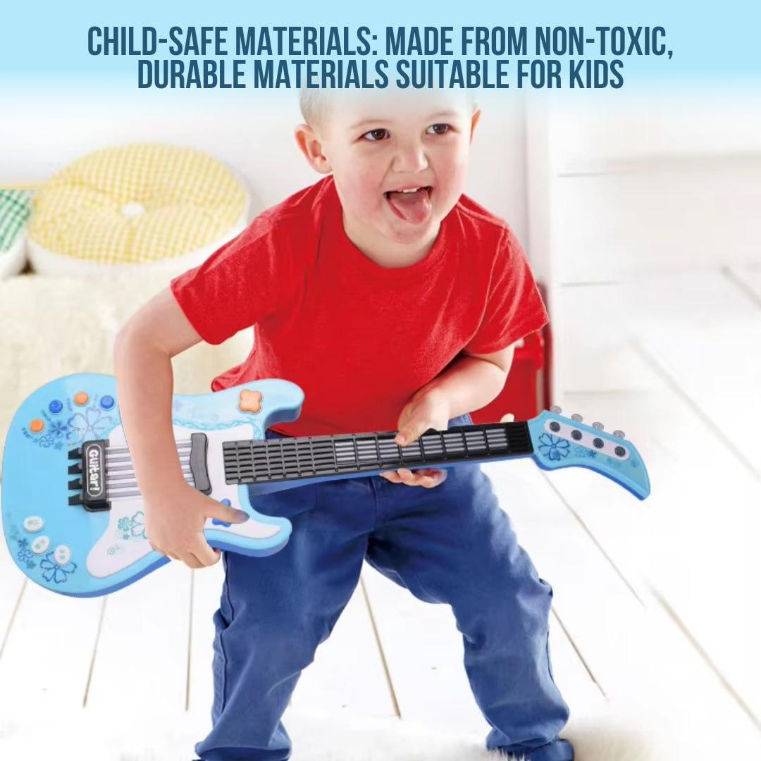 The smart toy guitar's main body has an infrared sensor area; touch the infrared region coherently, just like playing music; as you touch the infrared area, the interactive lights will flash blue and red in sync with the music beat, brilliant and dramatic.