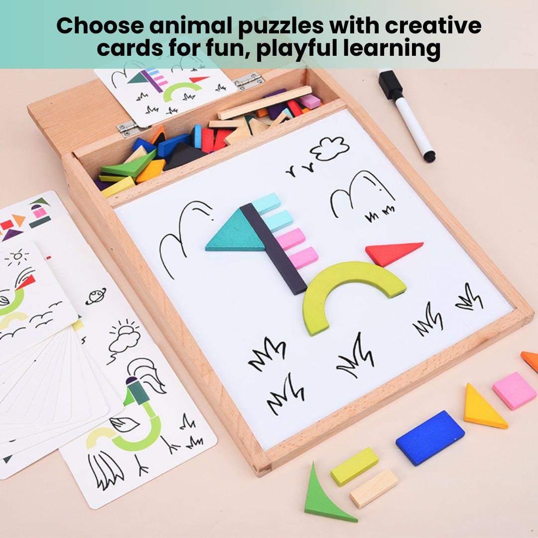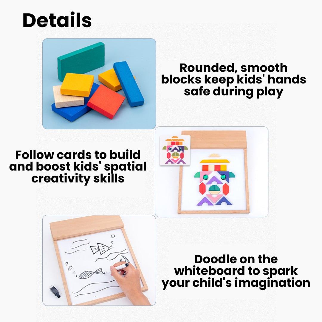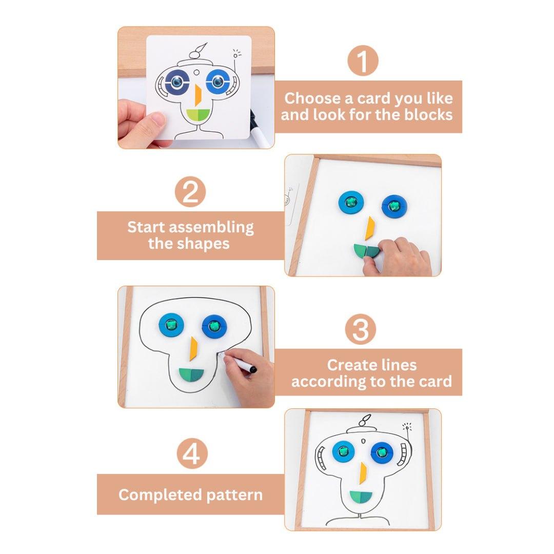 Choose a card, then allow your child to select the appropriate block and draw it on the doodle board accordingly. Playing the wooden puzzle game will help your child learn...