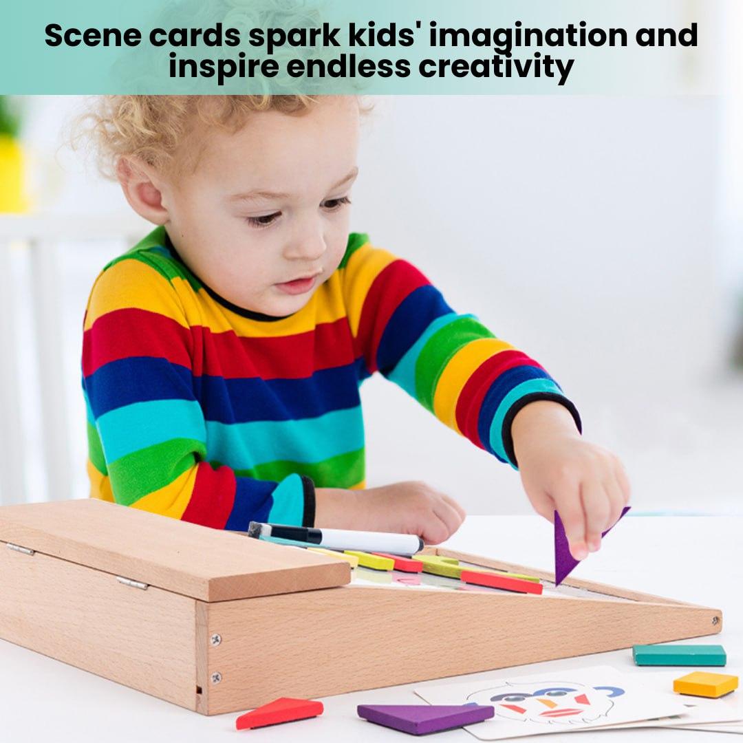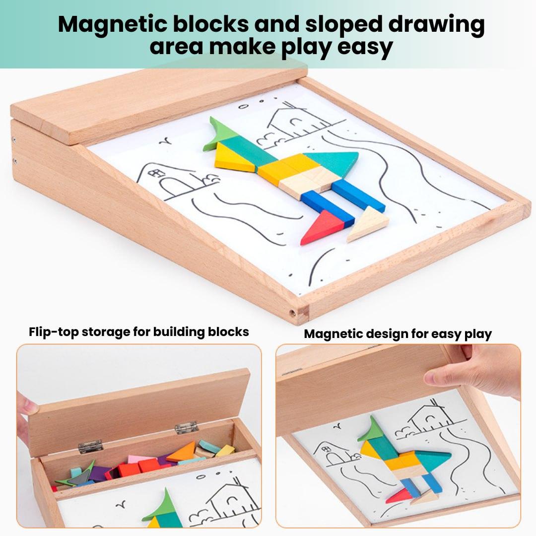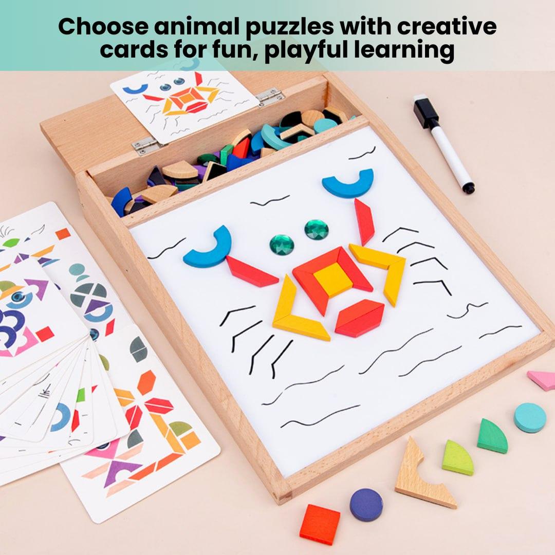 Choose a card, then allow your child to select the appropriate block and draw it on the doodle board accordingly. Playing the wooden puzzle game will help your child learn...