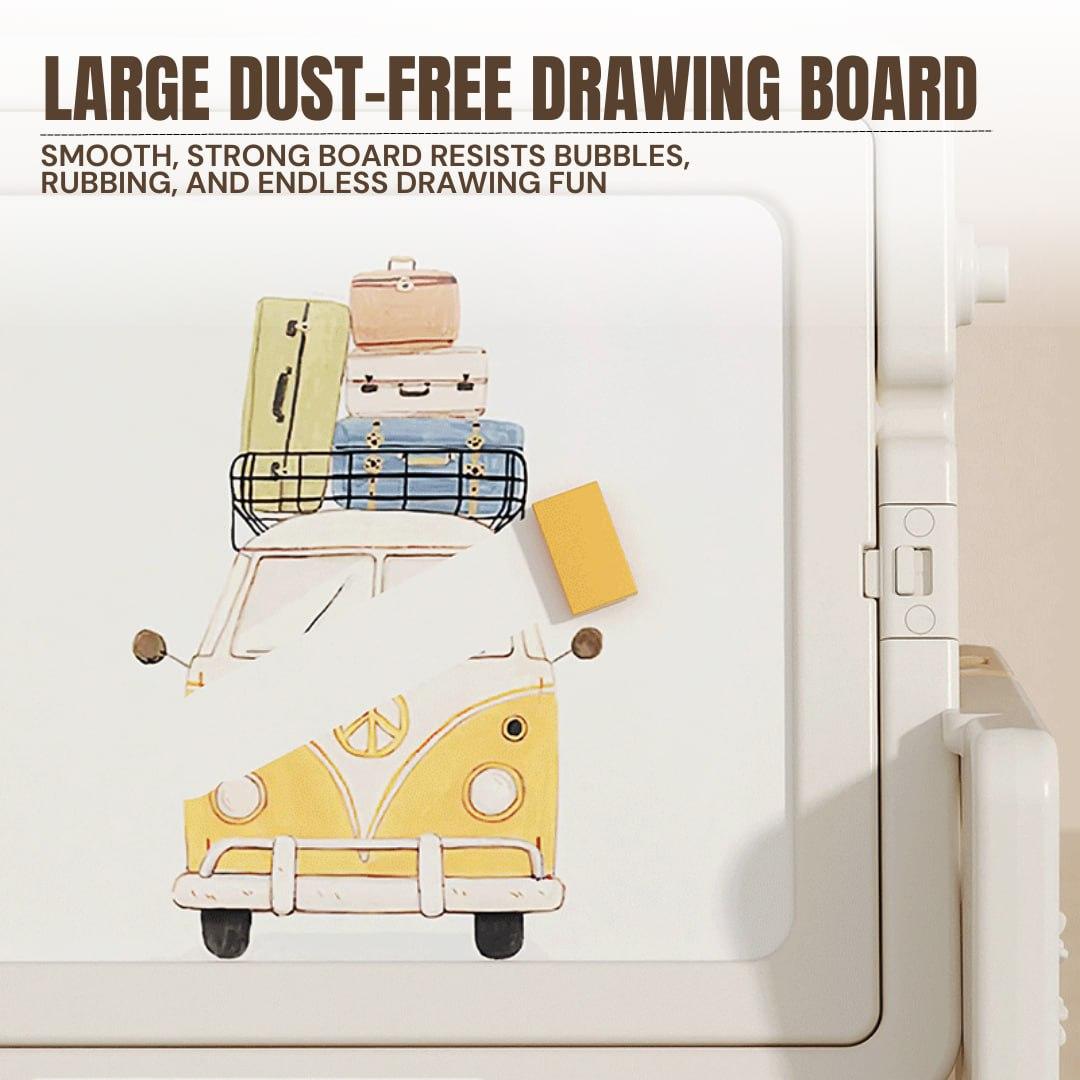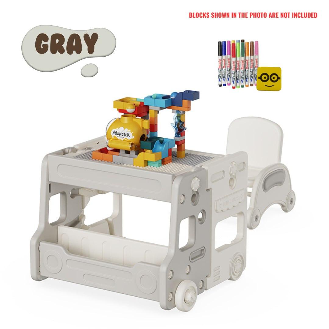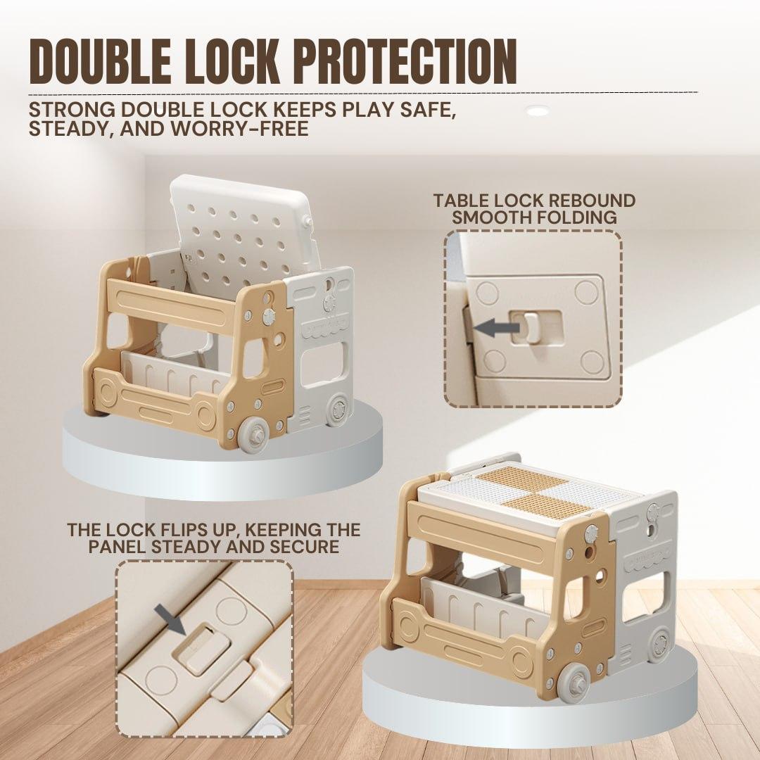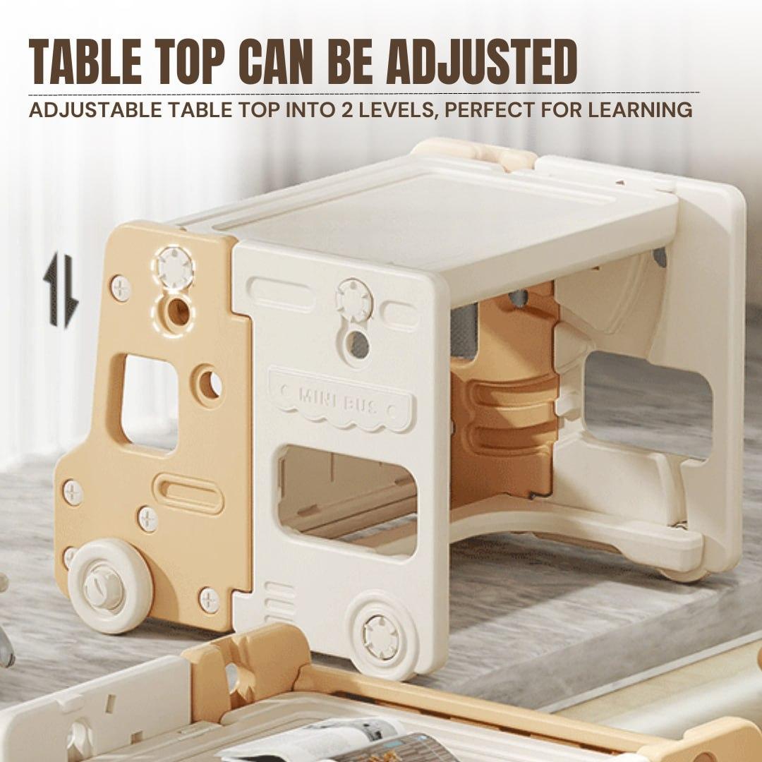 This ingenious Mini Bus Table converts effortlessly into three practical modes: a building block table, a drawing board, and a bookcase. Whether your child wants to play, learn, or organize their books, this multi-mode table easily accommodates their demands.