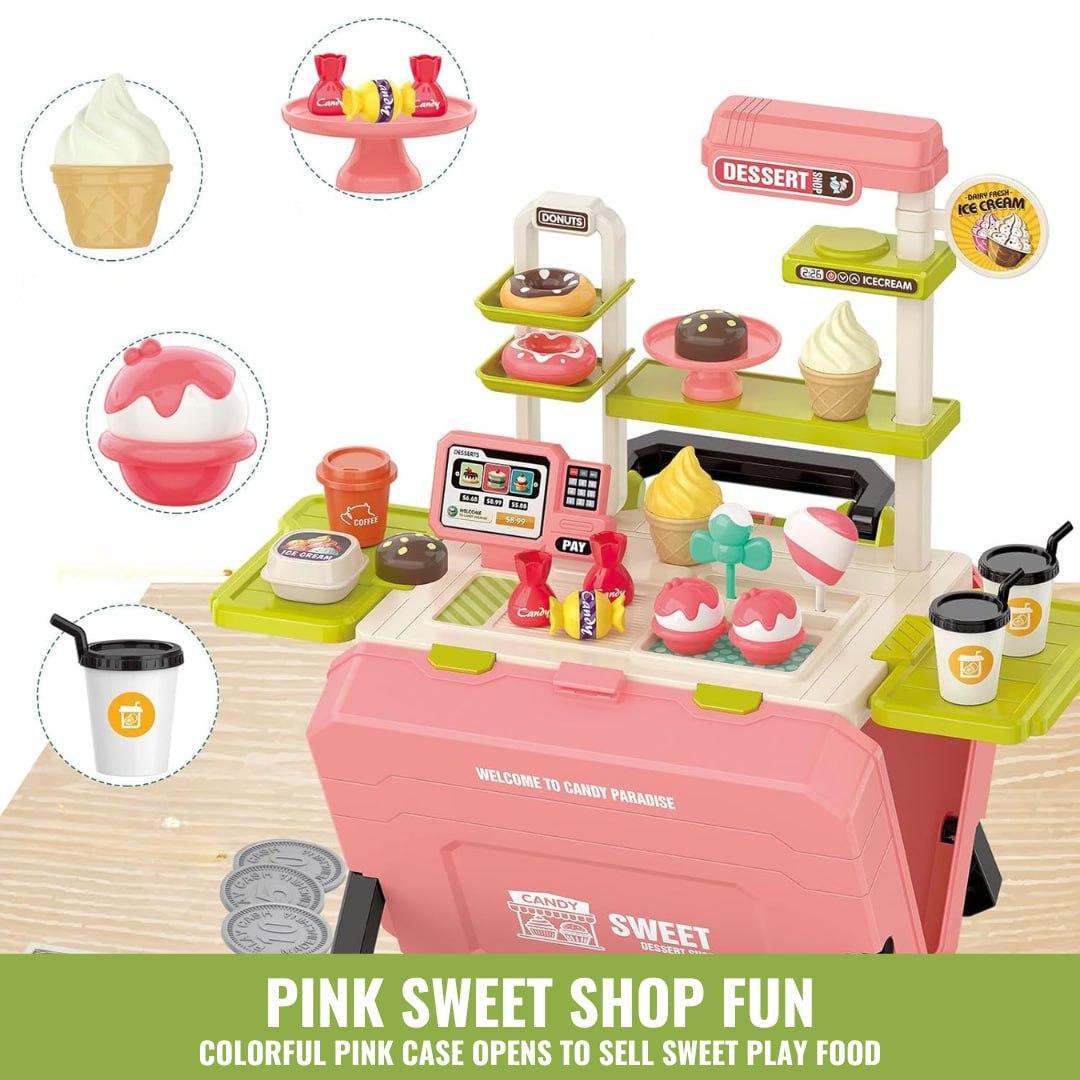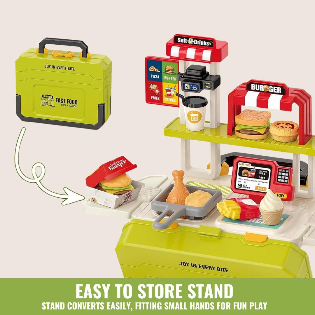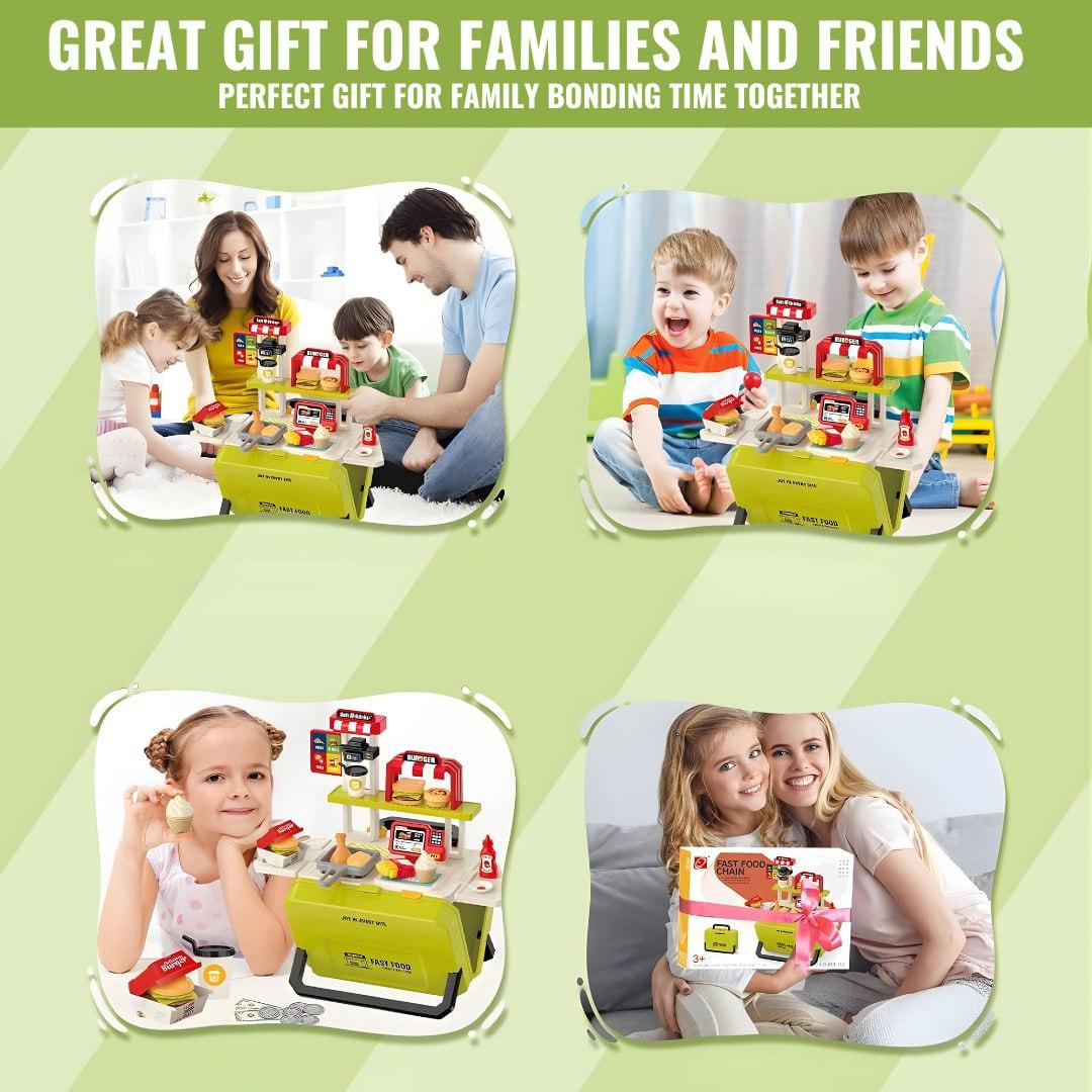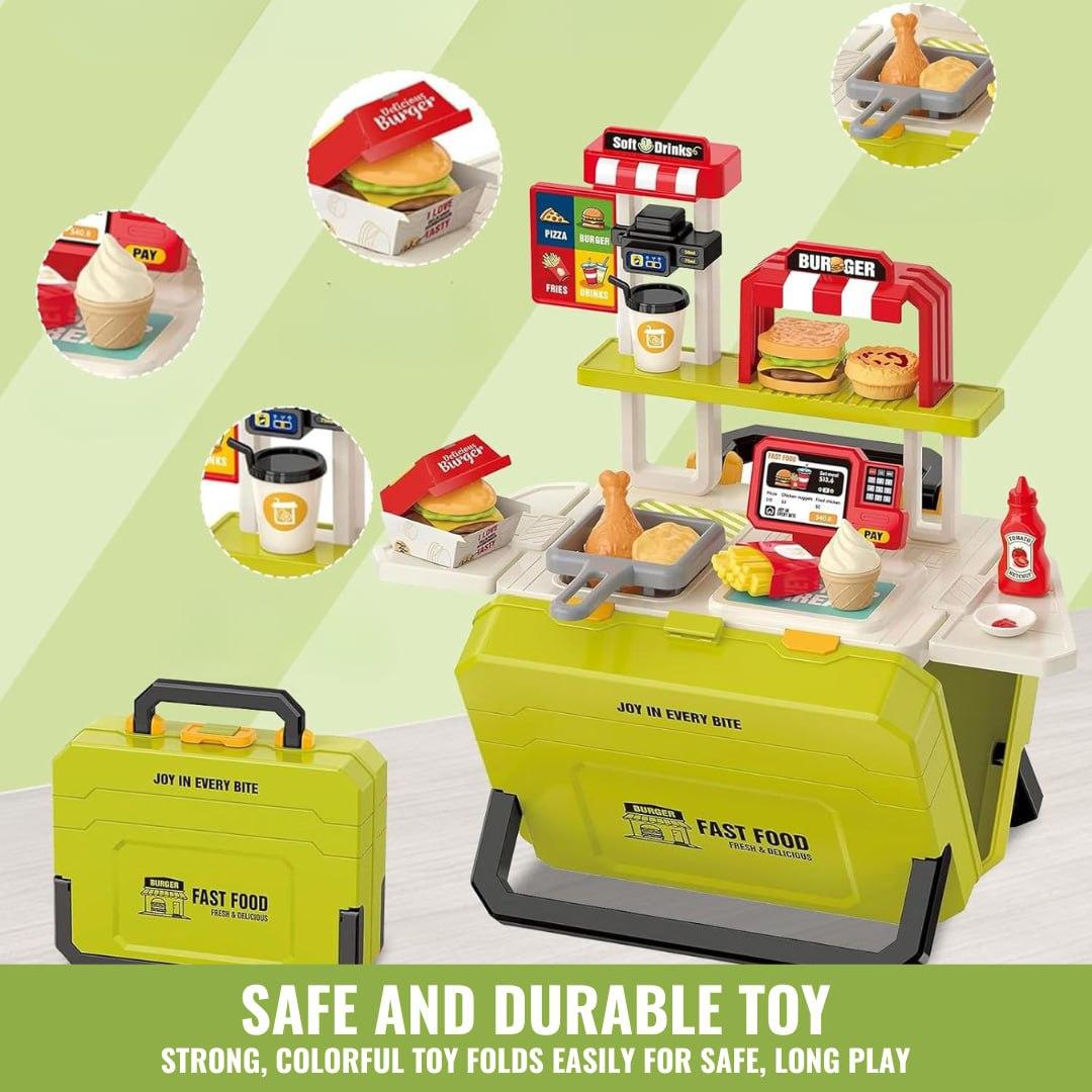 Versatile 3-in-1 Fun: Features distinct and colorful themes—the Dessert Station, the BBQ Grill, and the Fast Food Shop—giving children multiple imaginative play options in one toy. Ultimate Portability Design: The...
