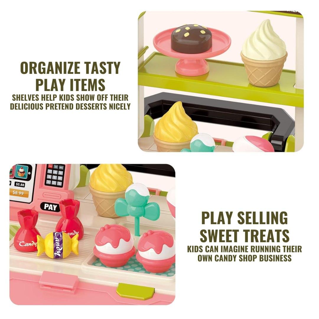 Versatile 3-in-1 Fun: Features distinct and colorful themes—the Dessert Station, the BBQ Grill, and the Fast Food Shop—giving children multiple imaginative play options in one toy.