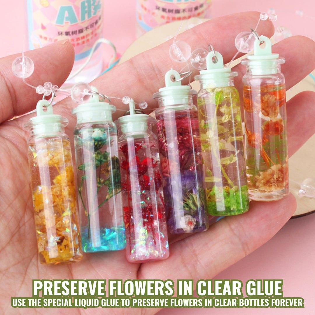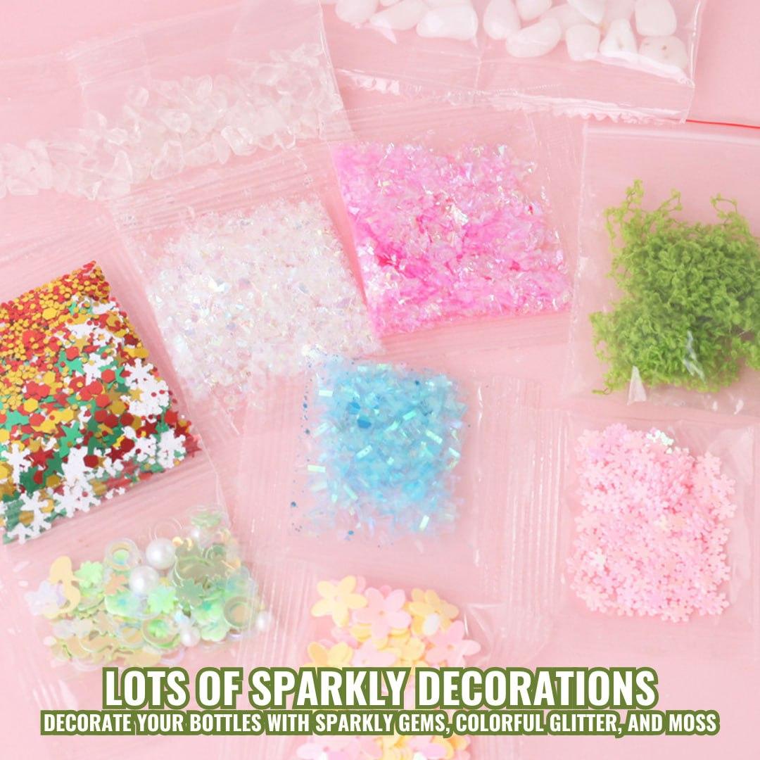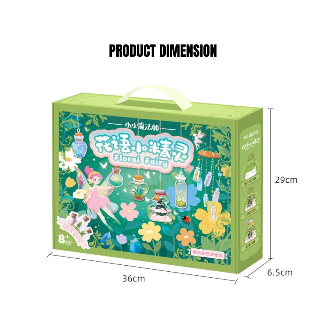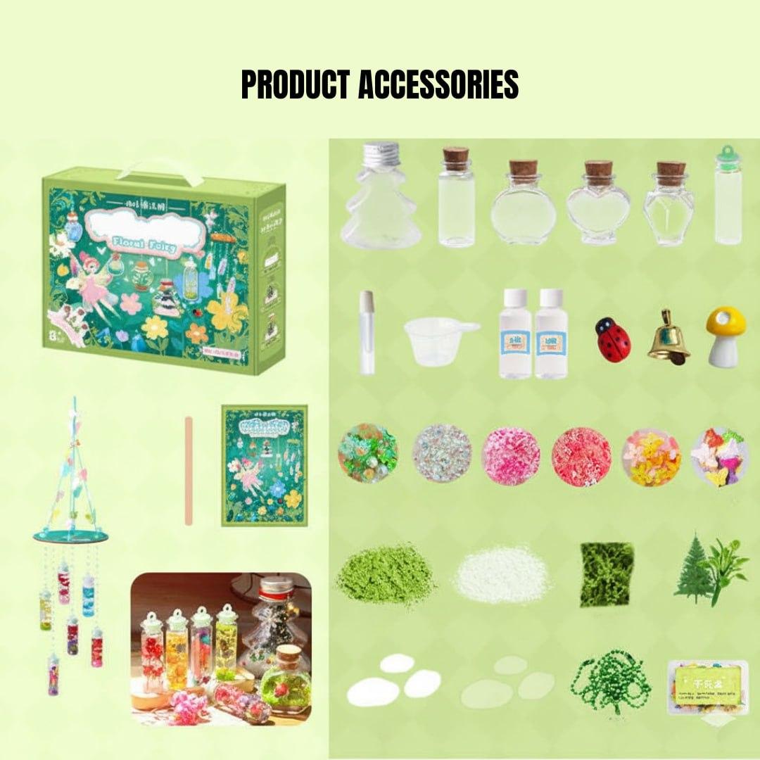 A delightful floral-themed craft kit where kids create enchanting mini fairy bottles filled with dried flowers, glitter, and magical decorations.
