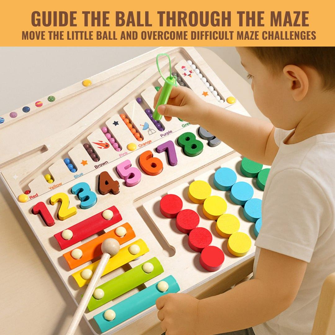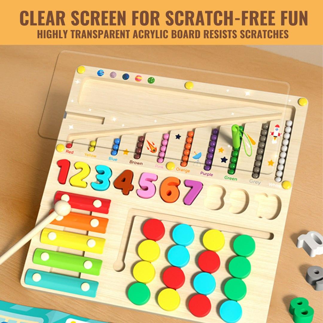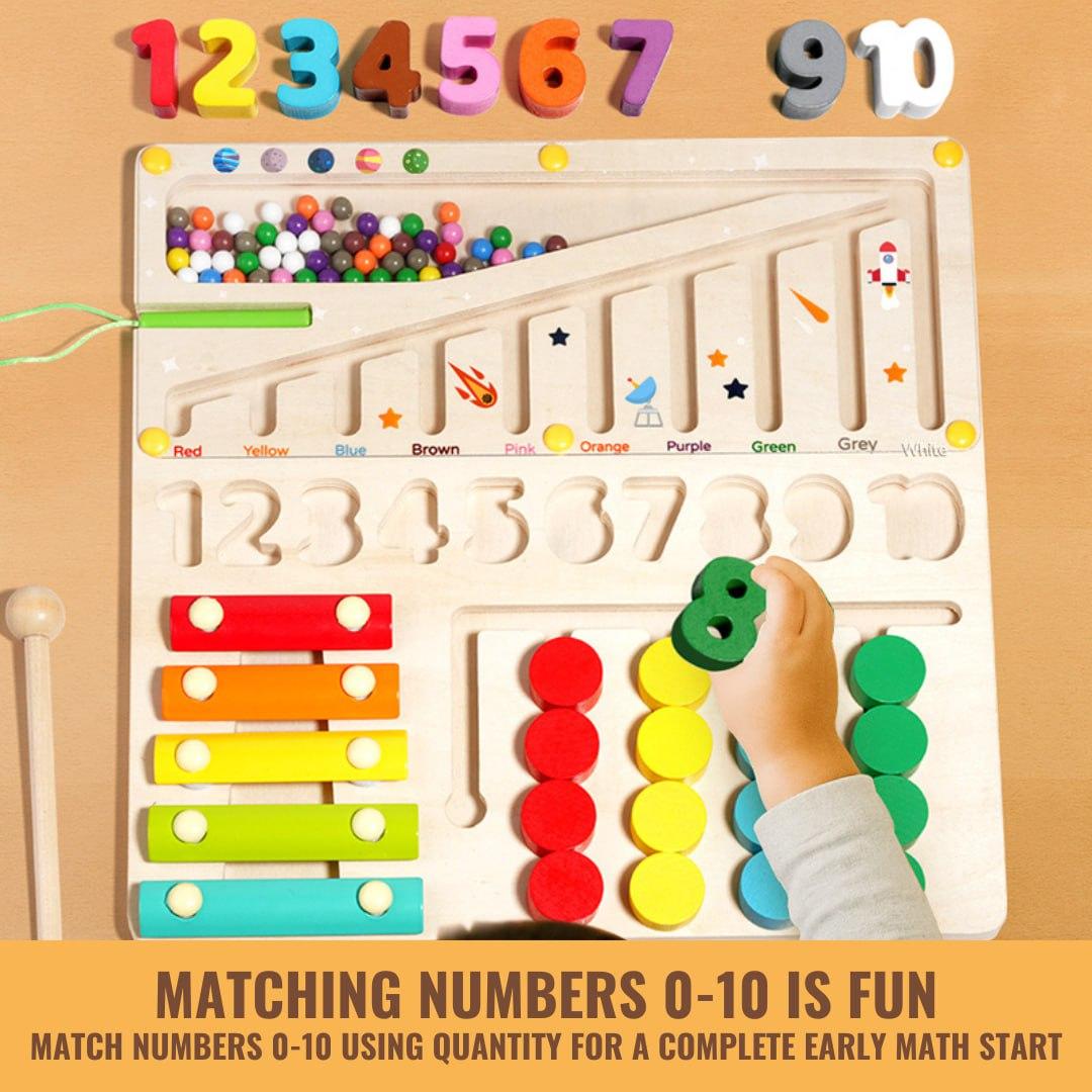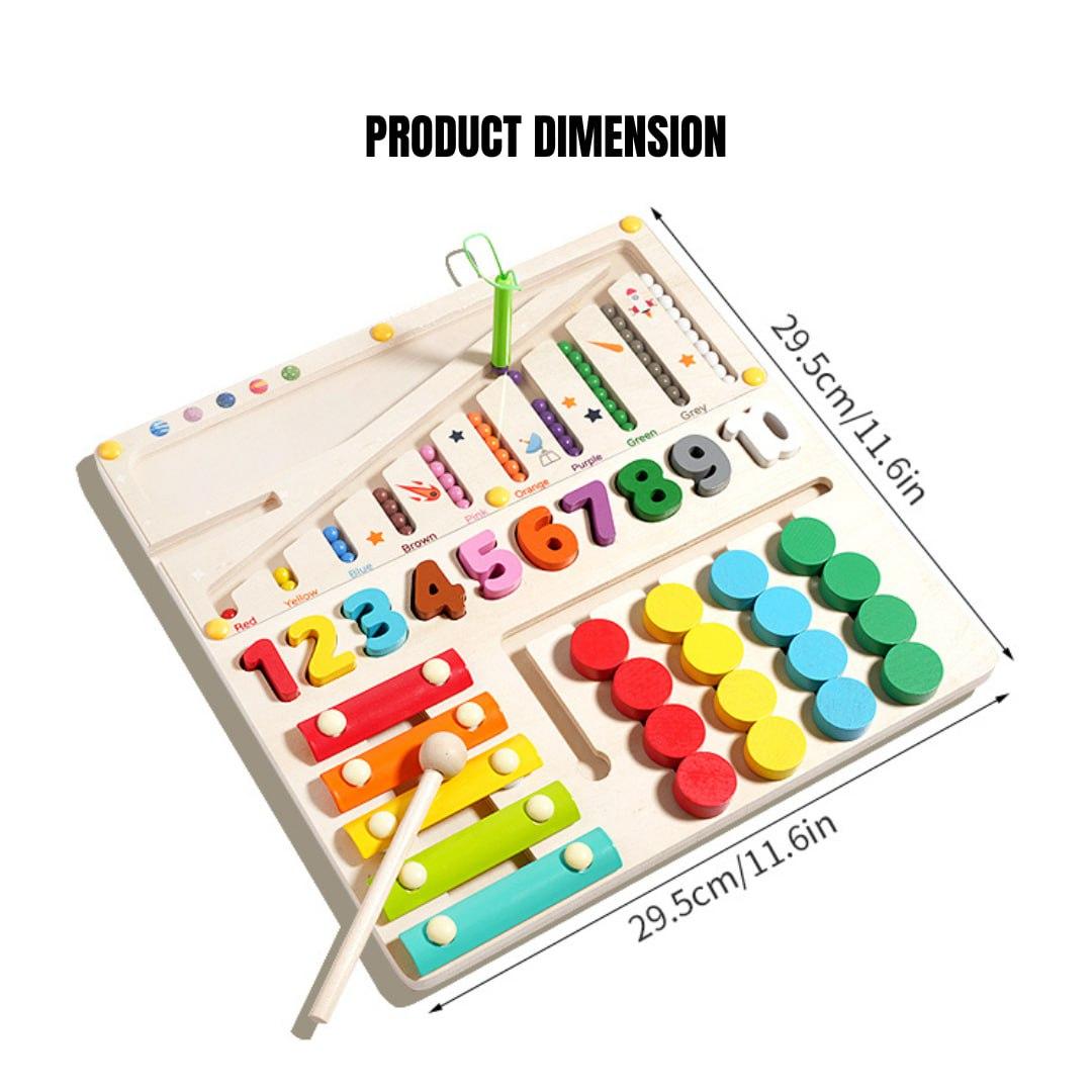 • Features a xylophone, counting beads, number puzzles, and color-matching activities for endless educational play.