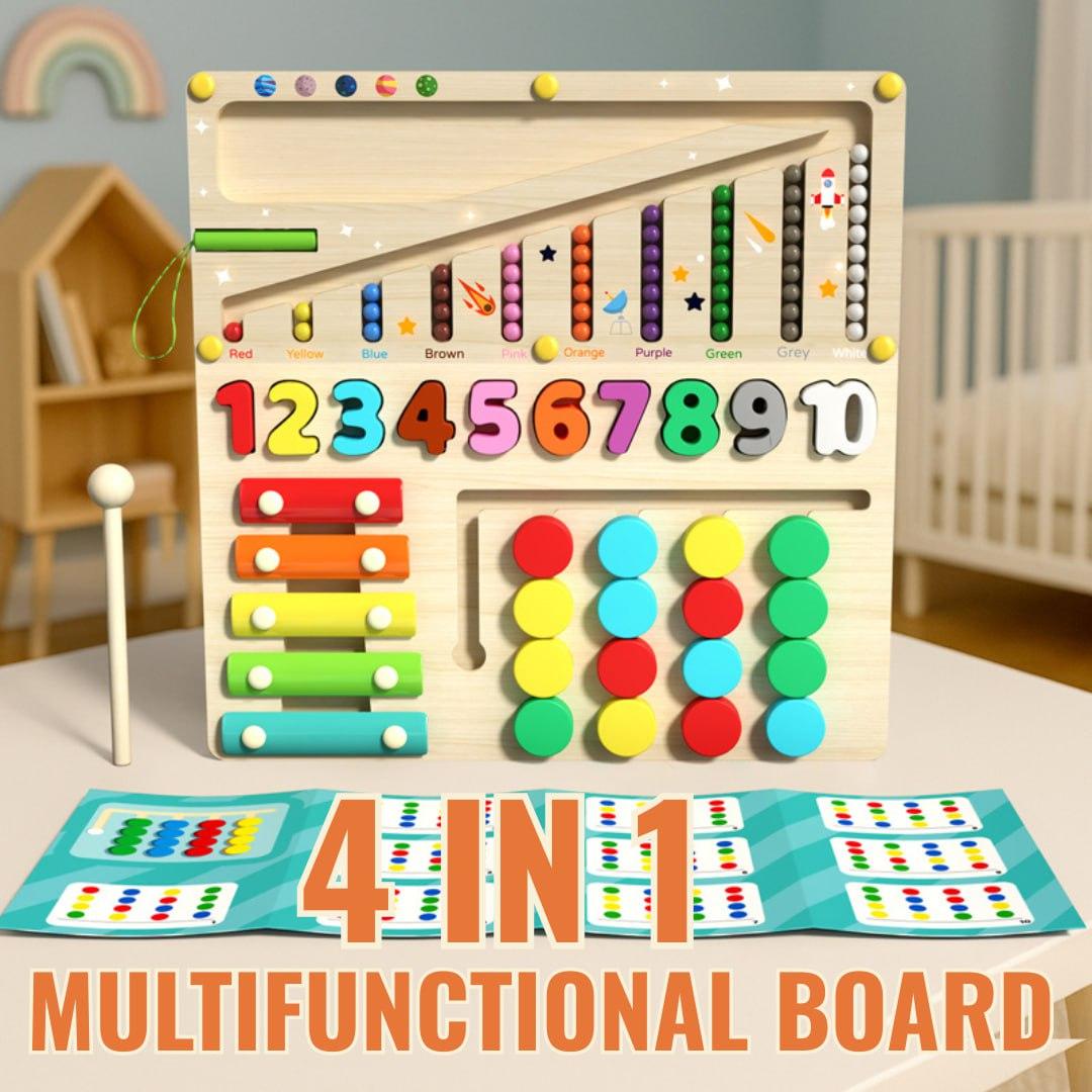 • A fun and interactive 4-in-1 learning board designed to develop your child’s color, number, and musical skills.