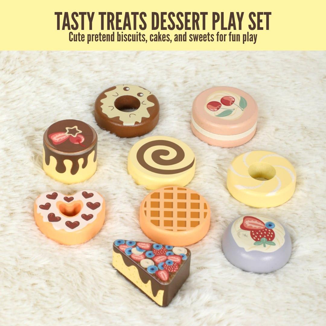 With its assortment of fake cakes, donuts, and pastries, this adorable two-tier wooden dessert table promotes role-playing, sharing, and creative storytelling. Playtime is made both aesthetically pleasing and safe for...