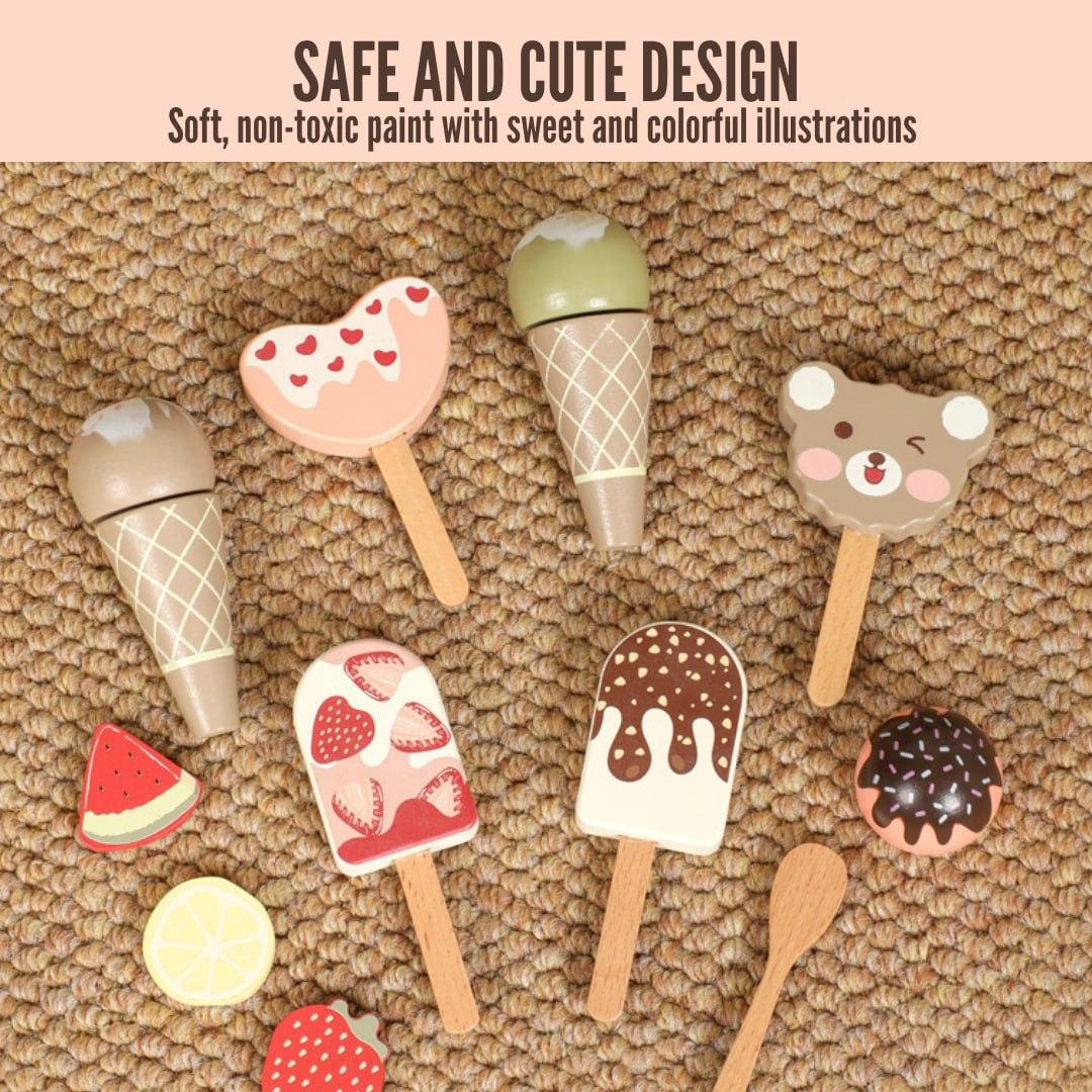 Includes adorable accents like cups, popsicles, and ice cream cones, as well as a tiny chalkboard menu that adds realism and interest to playtime.