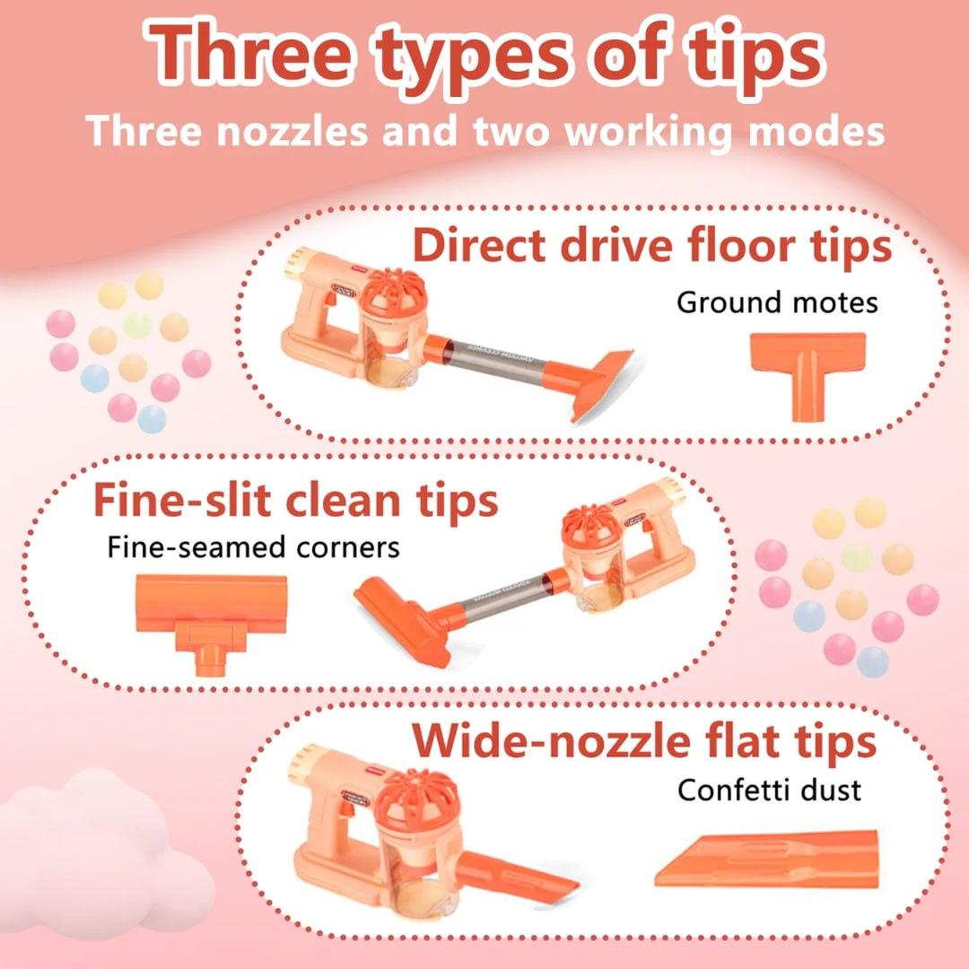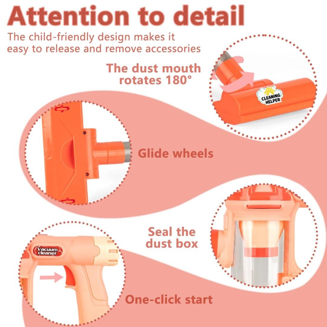 This children's vacuum cleaner not only looks like a real household vacuum cleaner, but it also features a built-in little suction device that can actually absorb small objects, providing children with an unmatched immersive cleaning experience that combines play and learning.