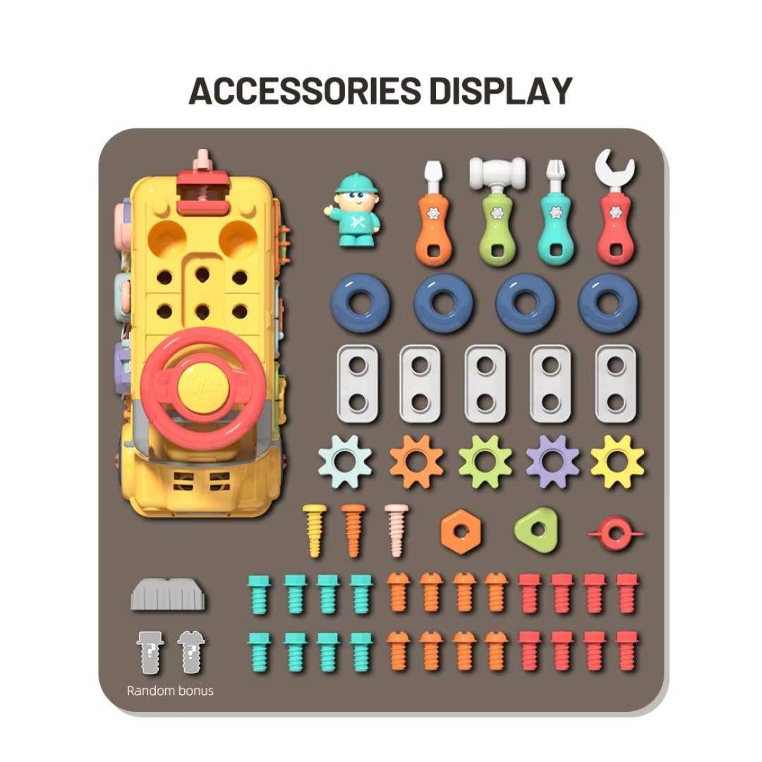 Assembly Engineering Car Screw Toys for Children. Children's tools can help them develop hand-eye coordination, hand-on abilities, and fine motor skills.