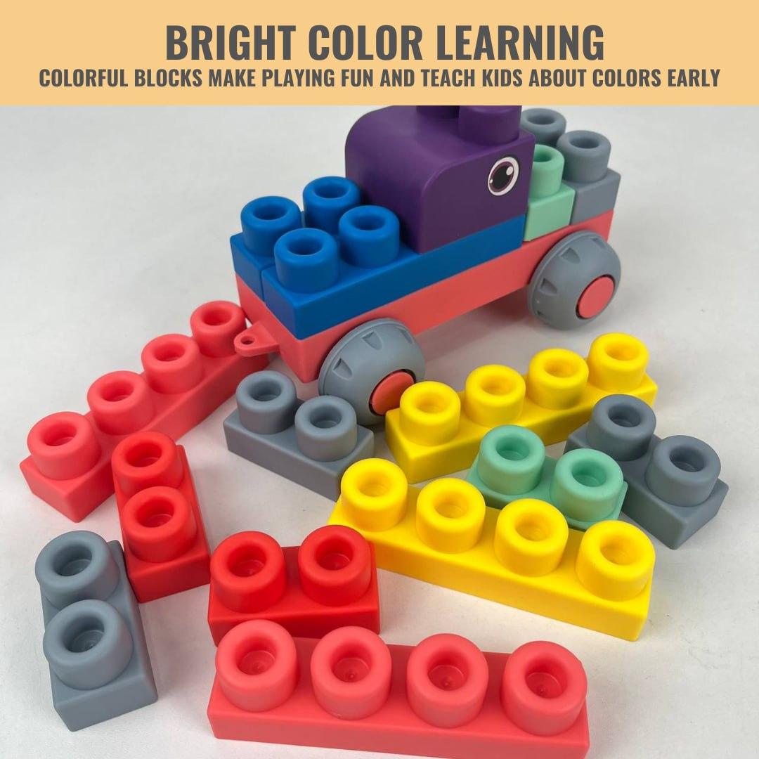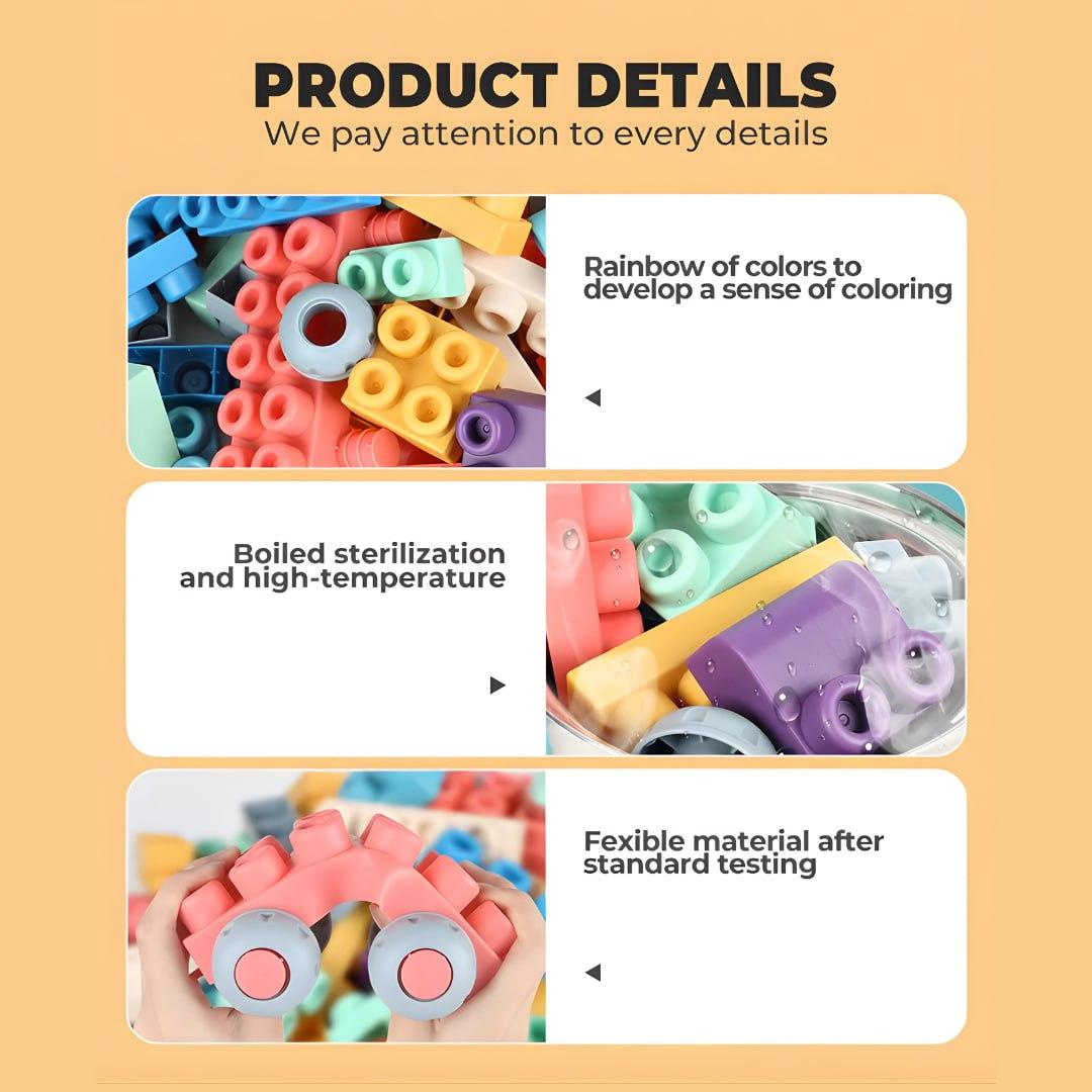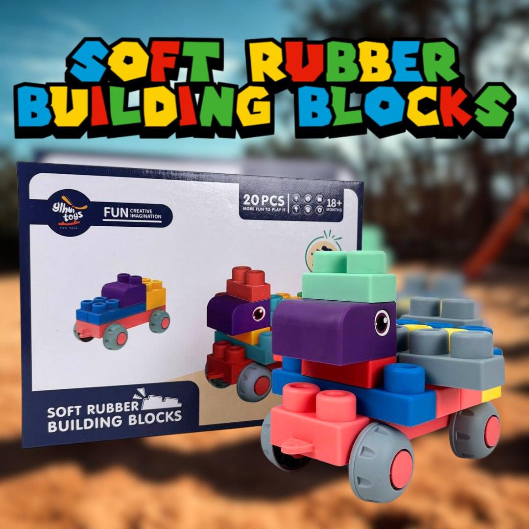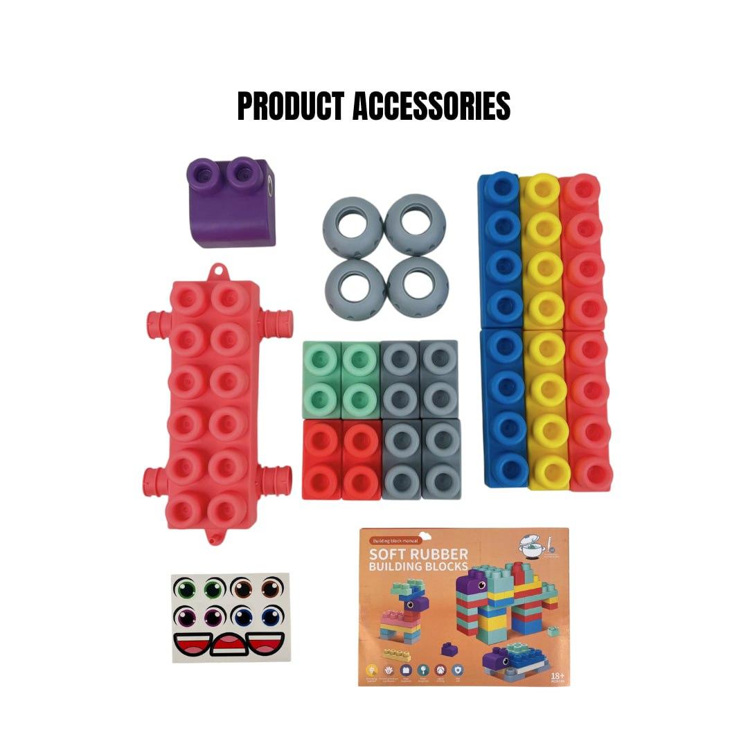 • Soft rubber building blocks designed for toddlers, featuring flexible and safe materials that are easy to grip, stack, and explore. The colorful and lightweight pieces encourage creative play as kids build simple structures and practice early developmental skills through hands-on fun.
