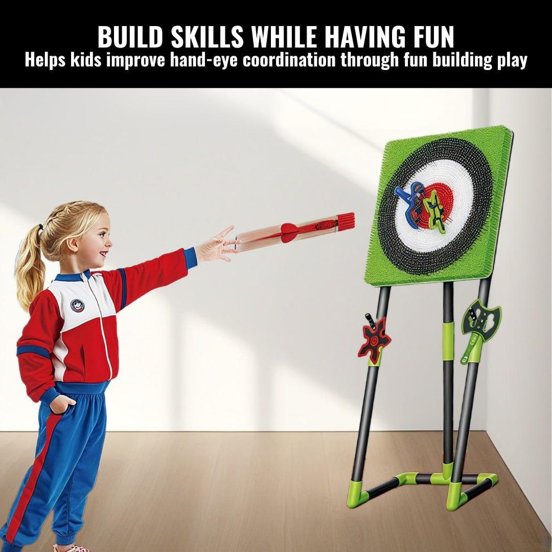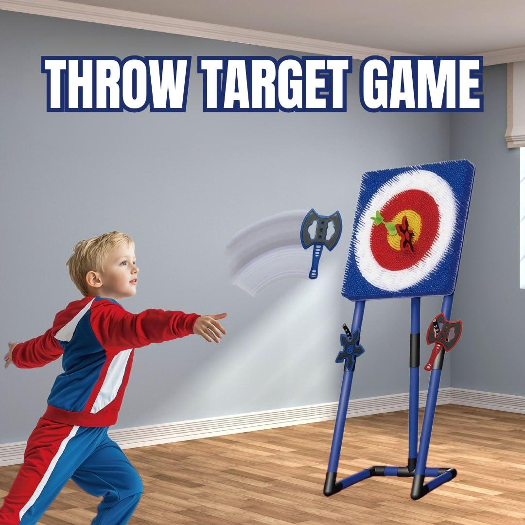 To reduce missing throws, this axe throwing game set has a big target panel and thick matrix pins.