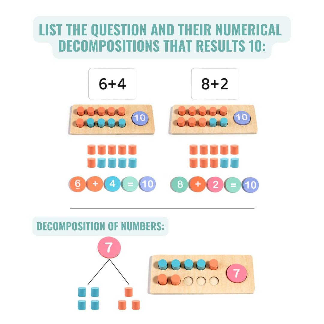 Includes colorful wooden counters, number tiles, and activity cards that support addition, subtraction, and comparison exercises, making early math both engaging and interactive.