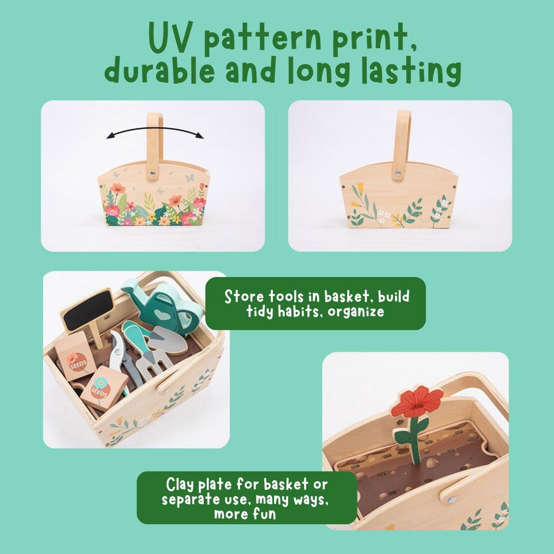 All wooden toy accessories and tools can be stored in the provided flower basket, enabling youngsters to acquire excellent cleaning habits while playing.