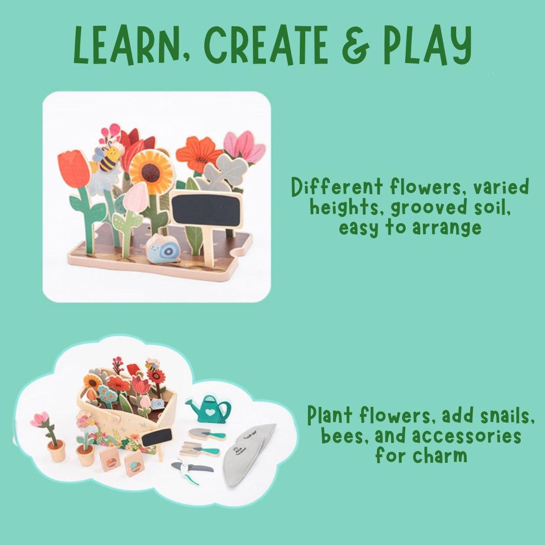 Each flower in the garden toy playset has a more realistic appearance. The soil board has precisely designed slots for simple planting and arranging, so any combination will look excellent.