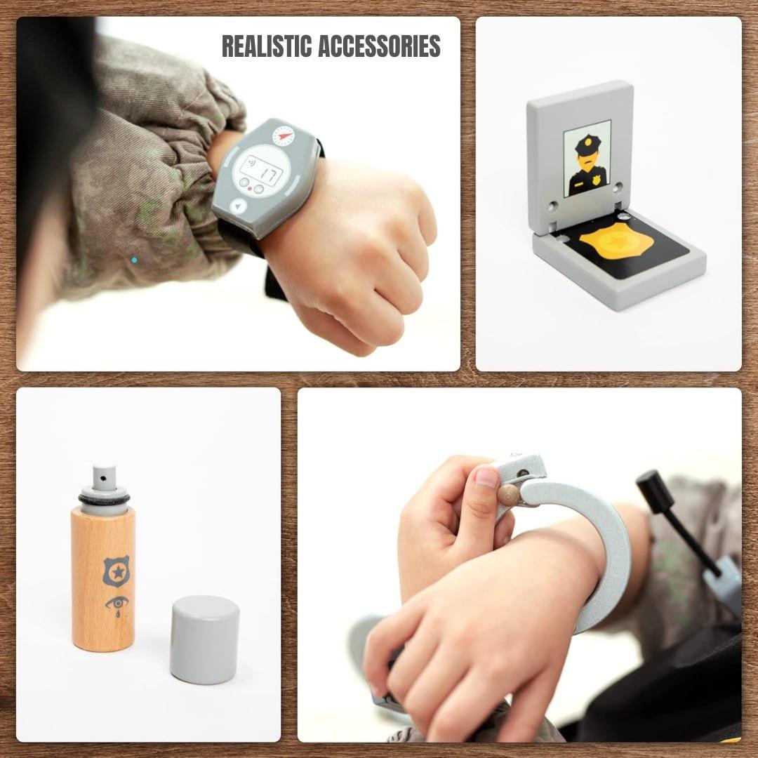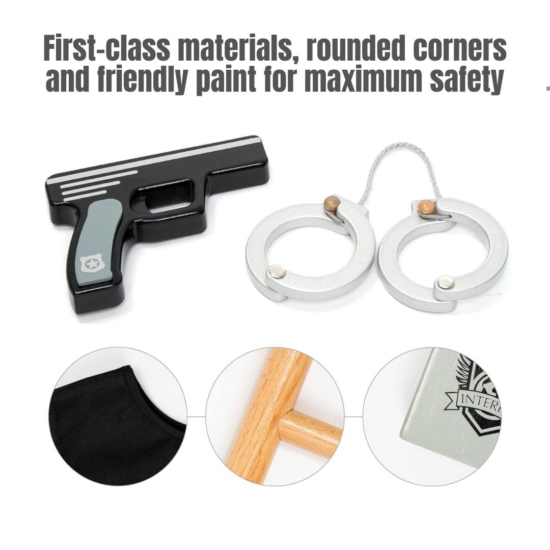Our police playsets are composed of high-quality materials that are safe for children's skin. The play set accessories are all made of solid wood with an environmentally friendly paint finish....