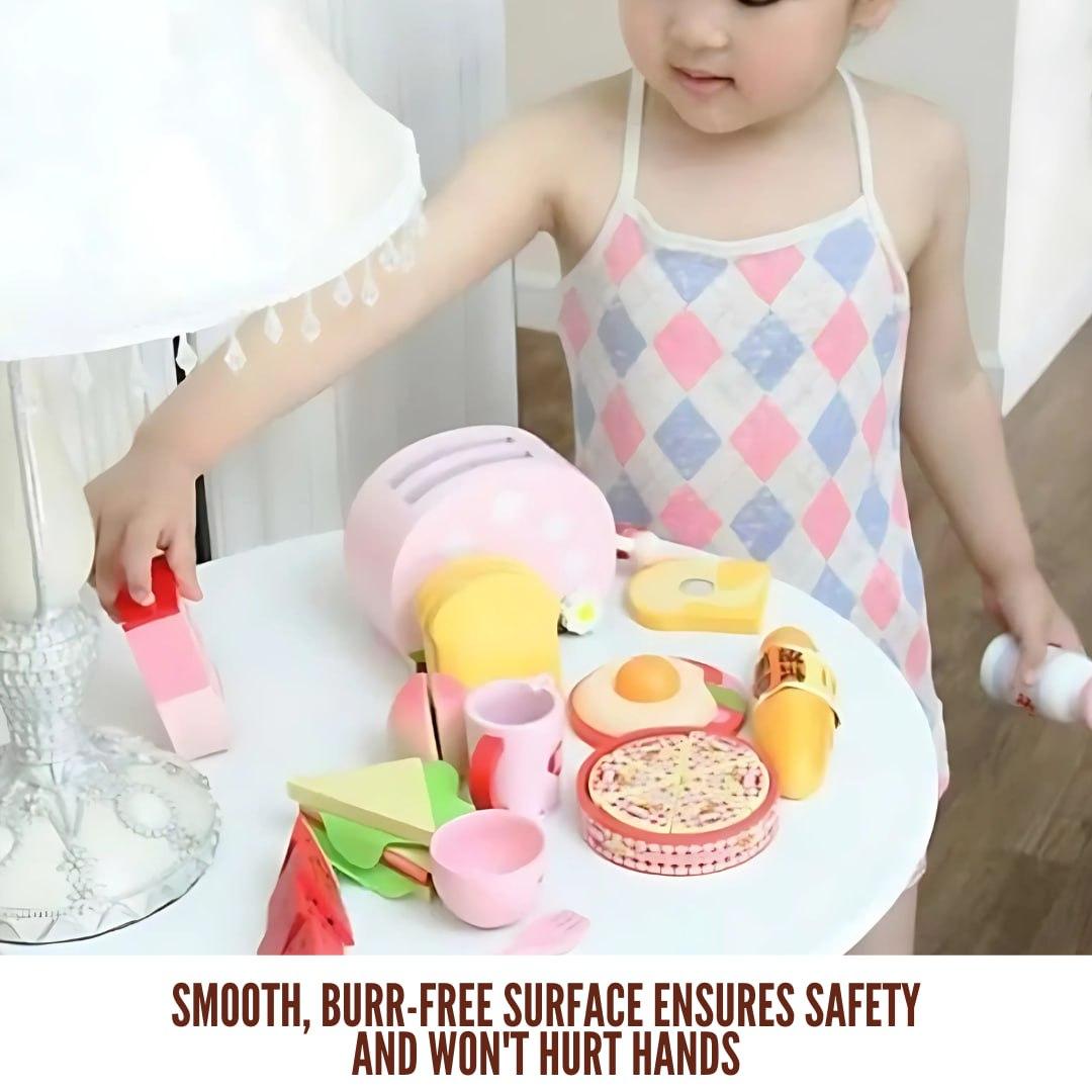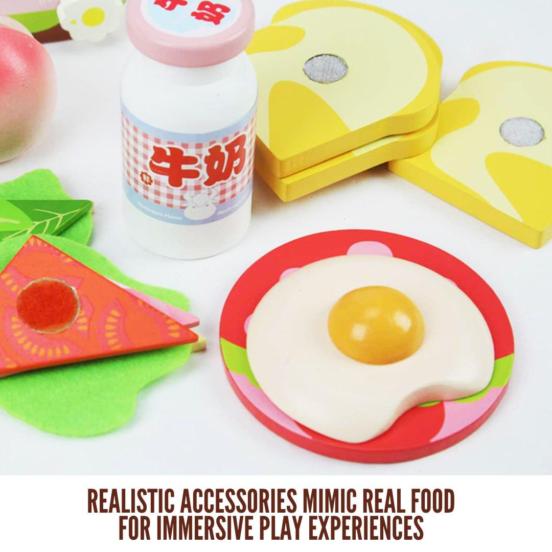 Children can discover Western breakfast customs in an engaging way with the "Western Breakfast Time" playset. With its wooden bread, eggs, milk cartons, and even a toy toaster, this set encourages children's imagination, role-playing, and enjoyable meal preparation.