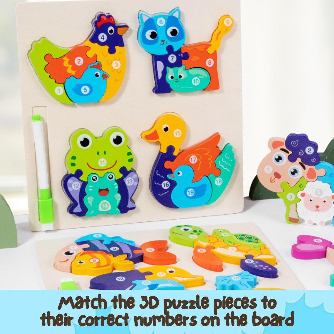 These puzzles include cute animals and birds such as sheep, rabbit, penguin, and fox. These puzzles not only add to the pleasure, but also pique children's interest in puzzles, which promotes cognitive development and problem-solving abilities.