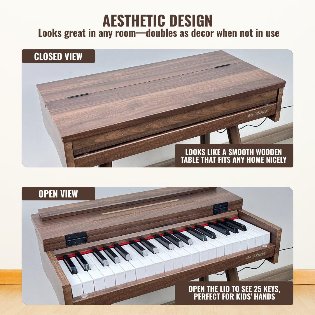 This sturdy toddler piano is made from premium, non-toxic wood and is made to be played with no worries. Its sturdy construction endures the everyday fervor of young musicians, and its smooth edges and lead-free paint guarantee the highest level of safety.
