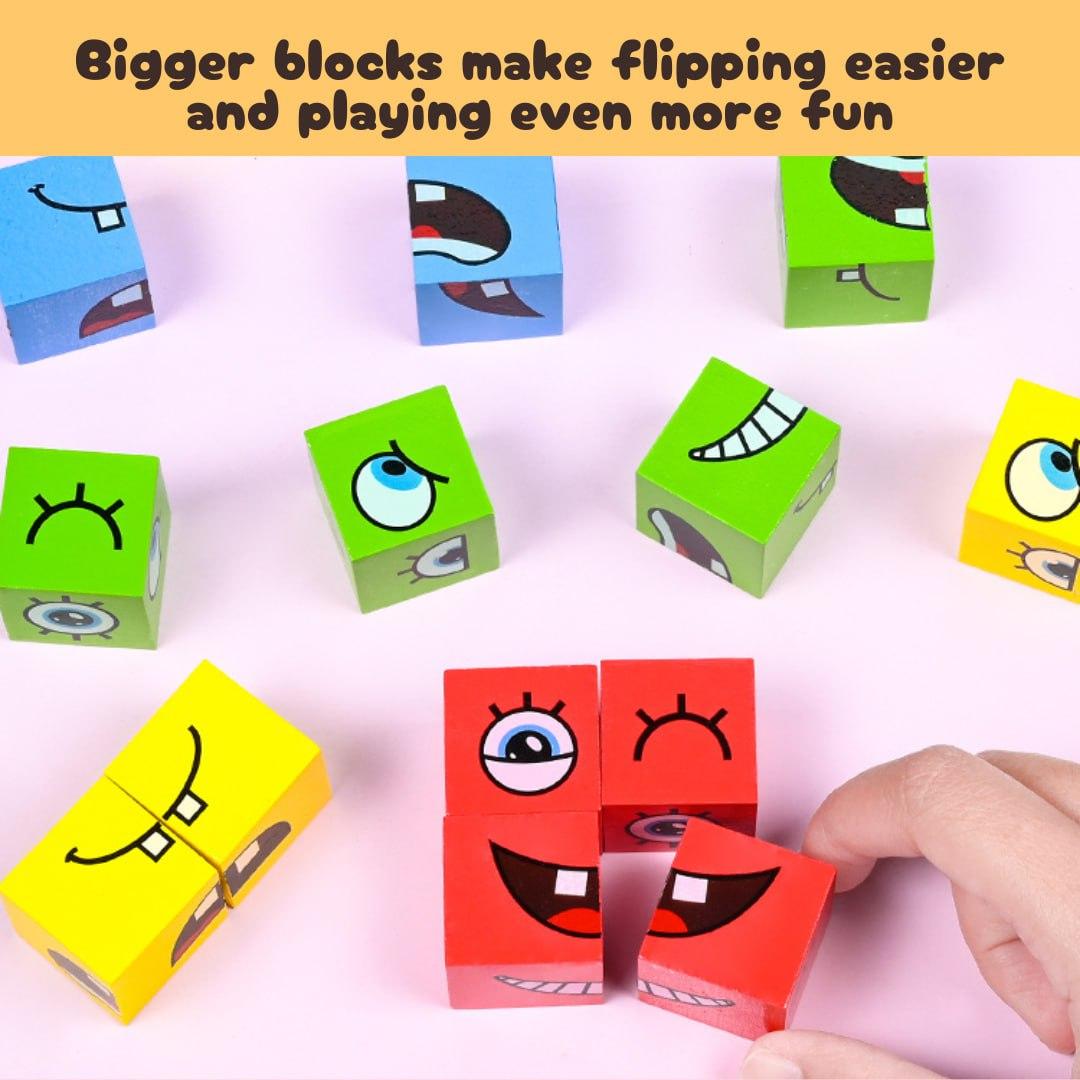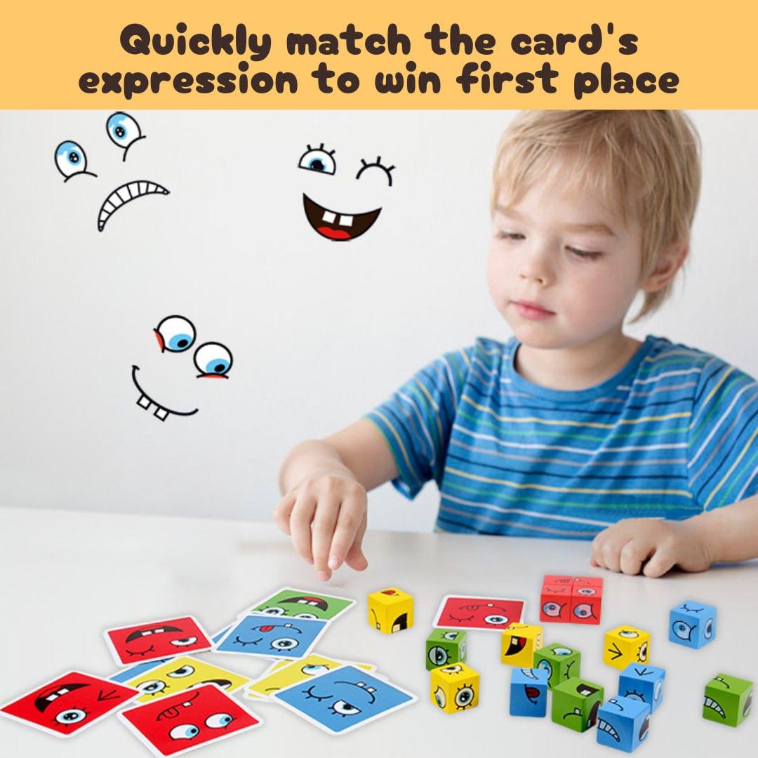 The expression block toy has a cute and engaging appearance, so children will easily concentrate on it. They will explore and attempt, which will improve their hand-eye coordination, logical thinking, practical skills, and fine motor abilities.
