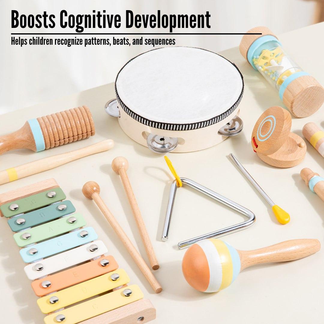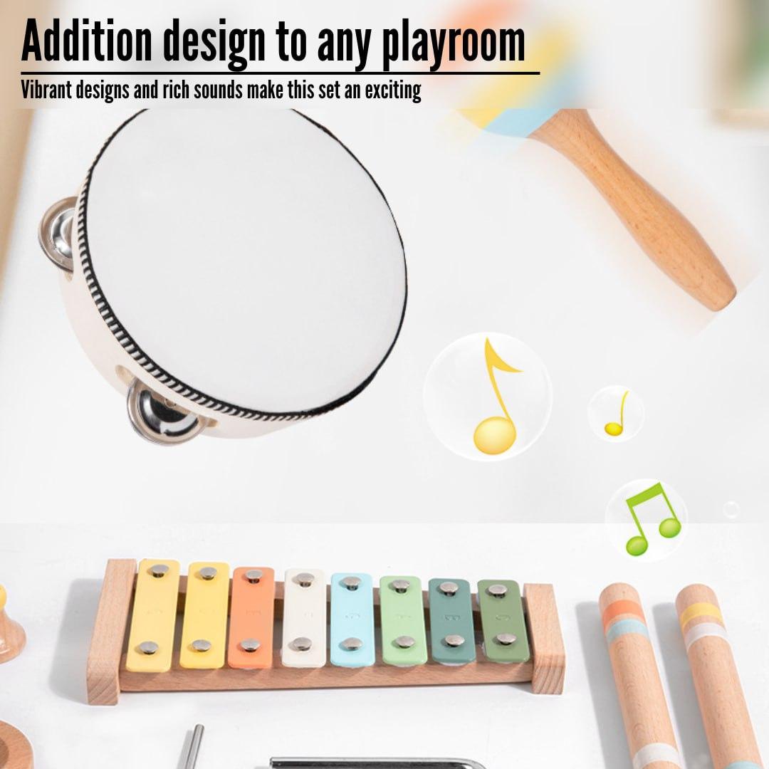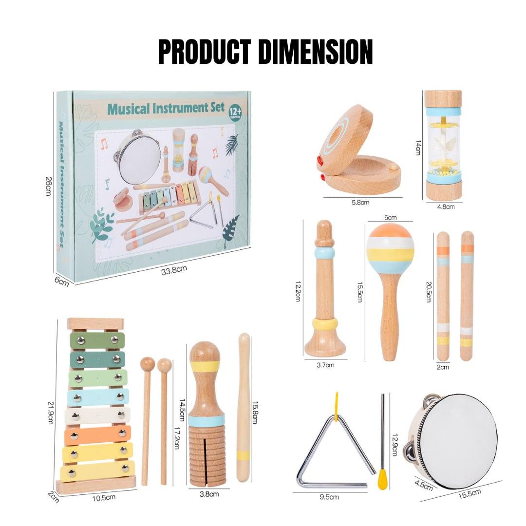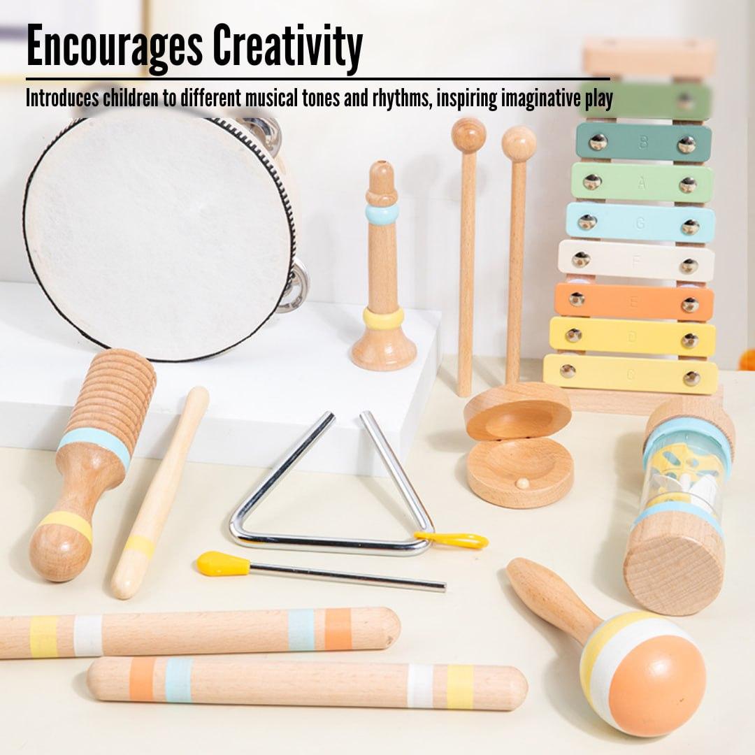 Toddler musical instruments can help develop musical awareness and rhythmic sense. The wooden music instrument is consistent with Montessori's educational philosophy and promotes sensory coordination, hand-eye collaboration, social engagement, and creativity in your infant.