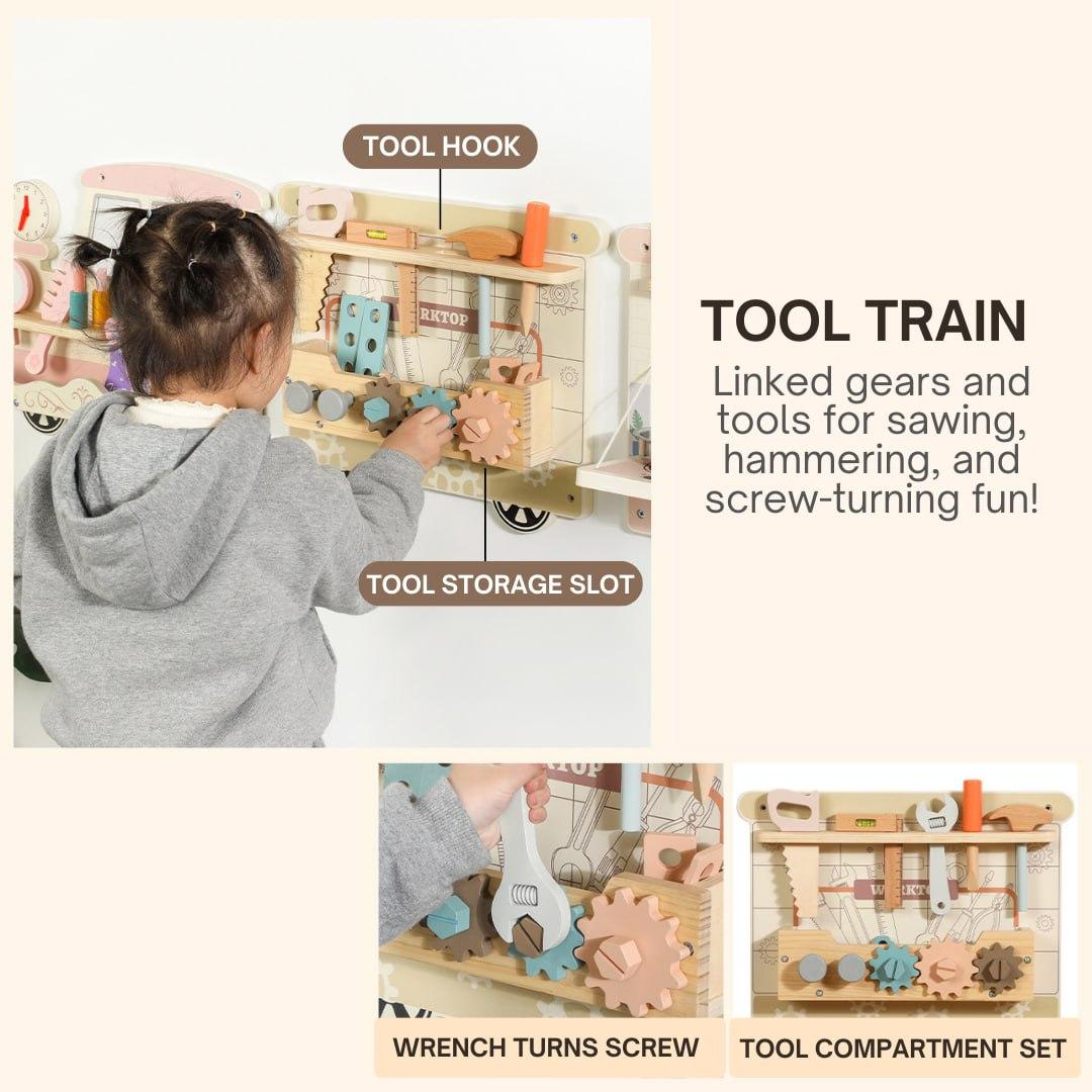 Wooden Train Wall Game Ages 3+ Interactive Activity Board Gift For Kids by WISHLAND
