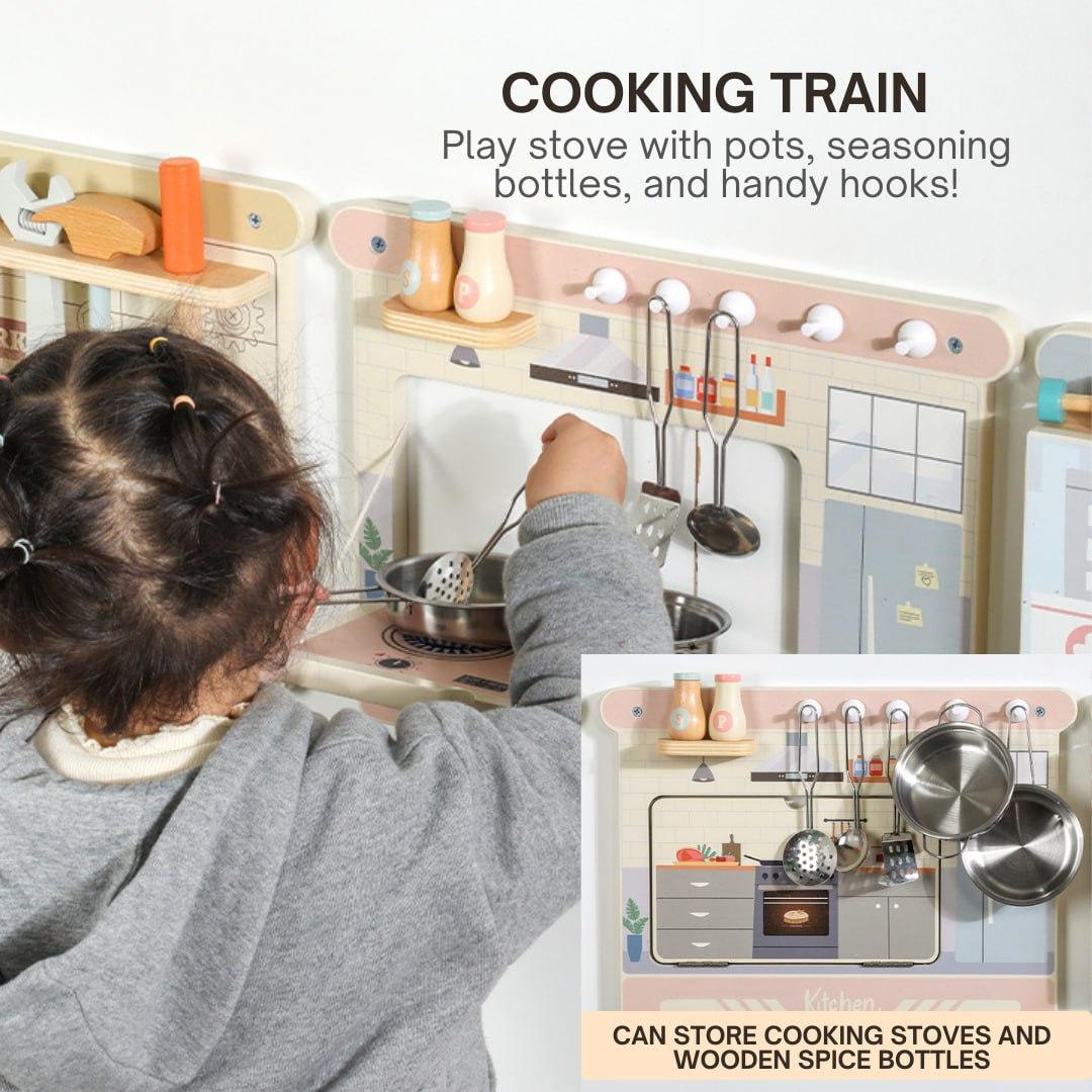 A train-themed interactive wall game with several activity panels containing gears, riddles, and educational features. Hands-on play promotes problem-solving, hand-eye coordination, and sensory learning, making it ideal for toddlers and...